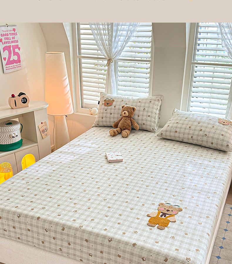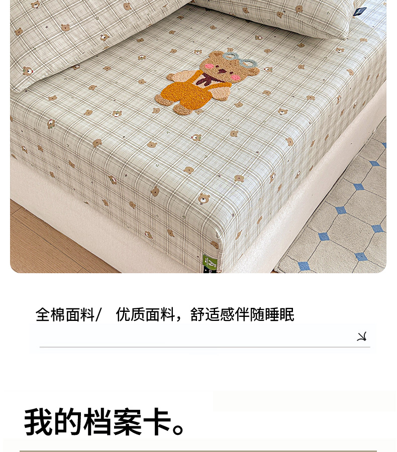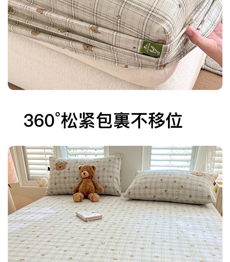 卡姿家纺 2025秋冬全棉双层纱-床笠三件套 床笠-熊仔宝贝