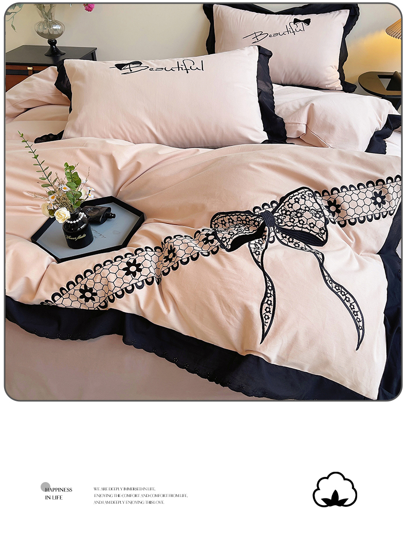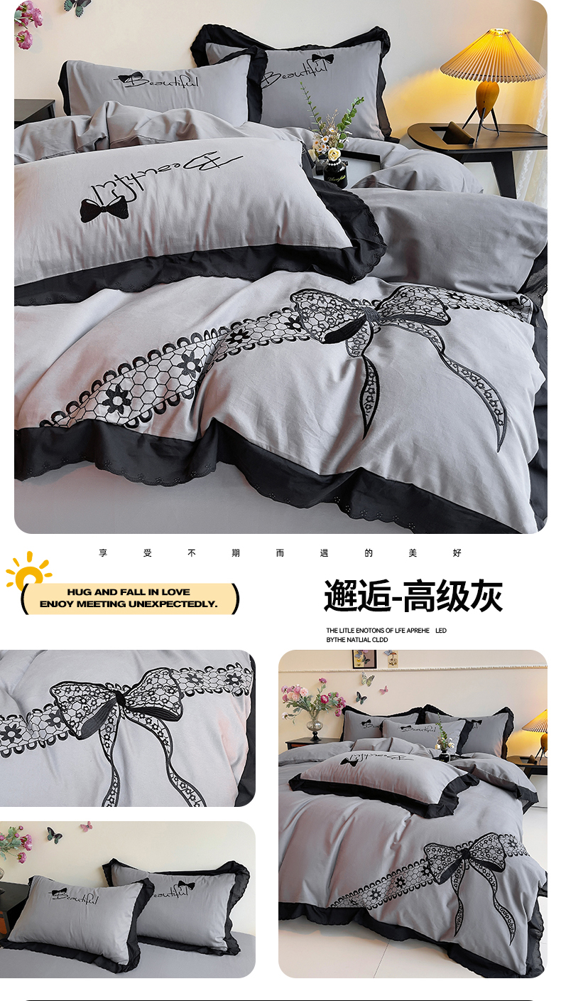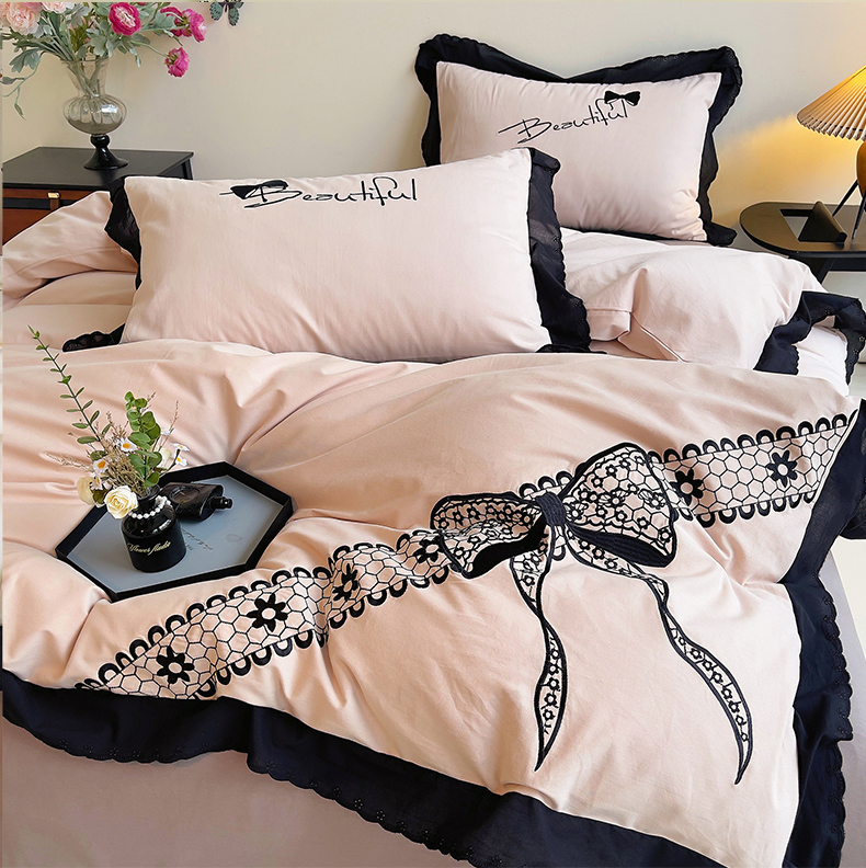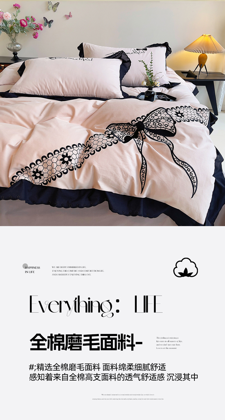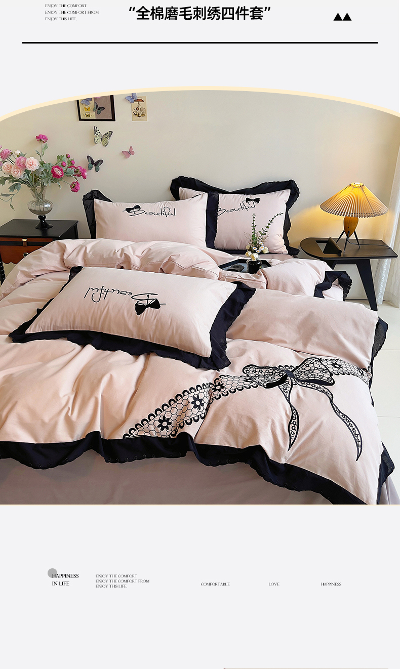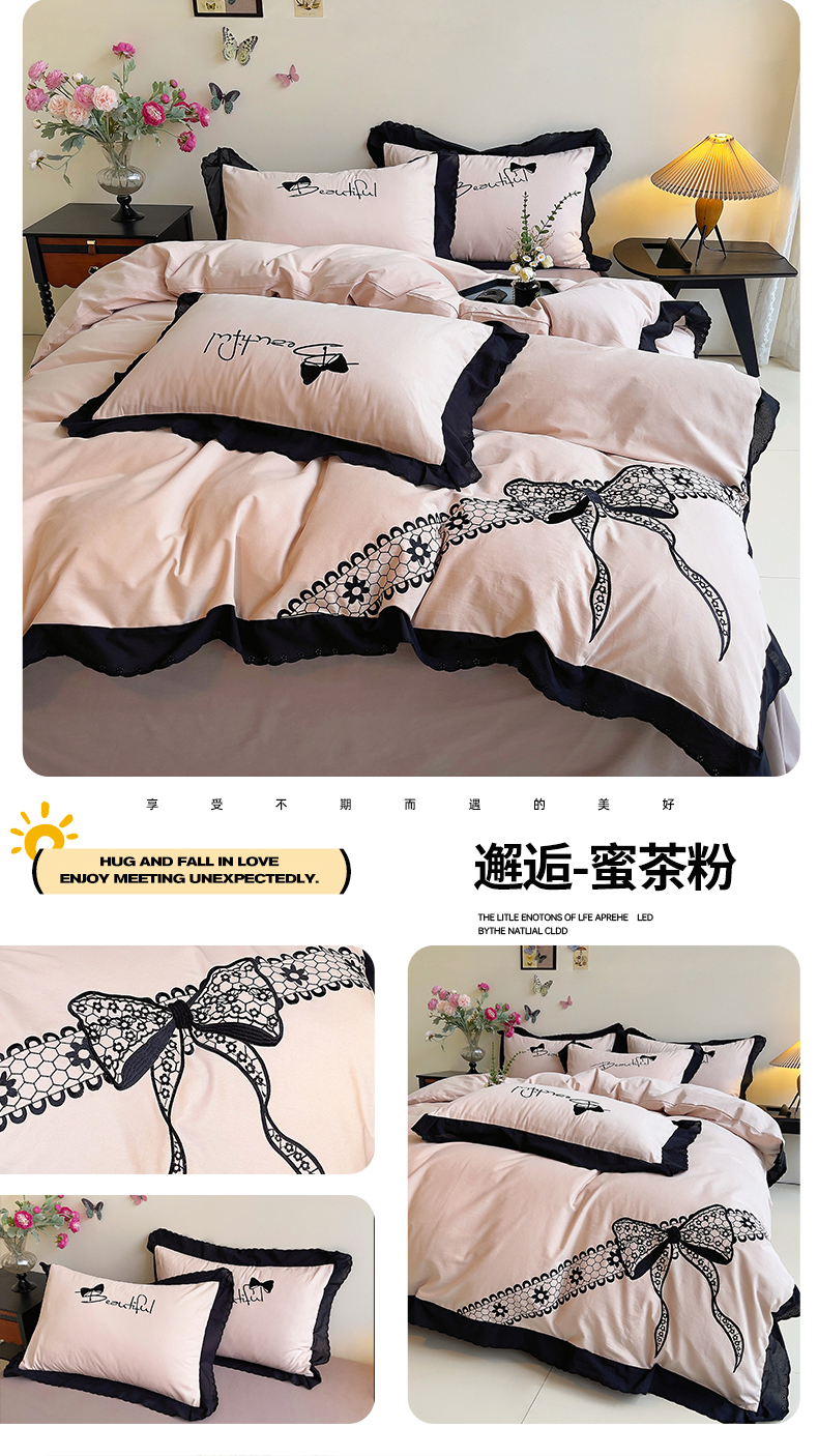 当前位置: 91家纺网 > 商品网购 > 床品套件 > 四件套 > 普通磨毛四件套 > 炫拼家纺 2026新款全棉纯棉韩版磨毛刺绣镂空花边纯棉四件套-邂逅系列 邂逅-蜜茶粉