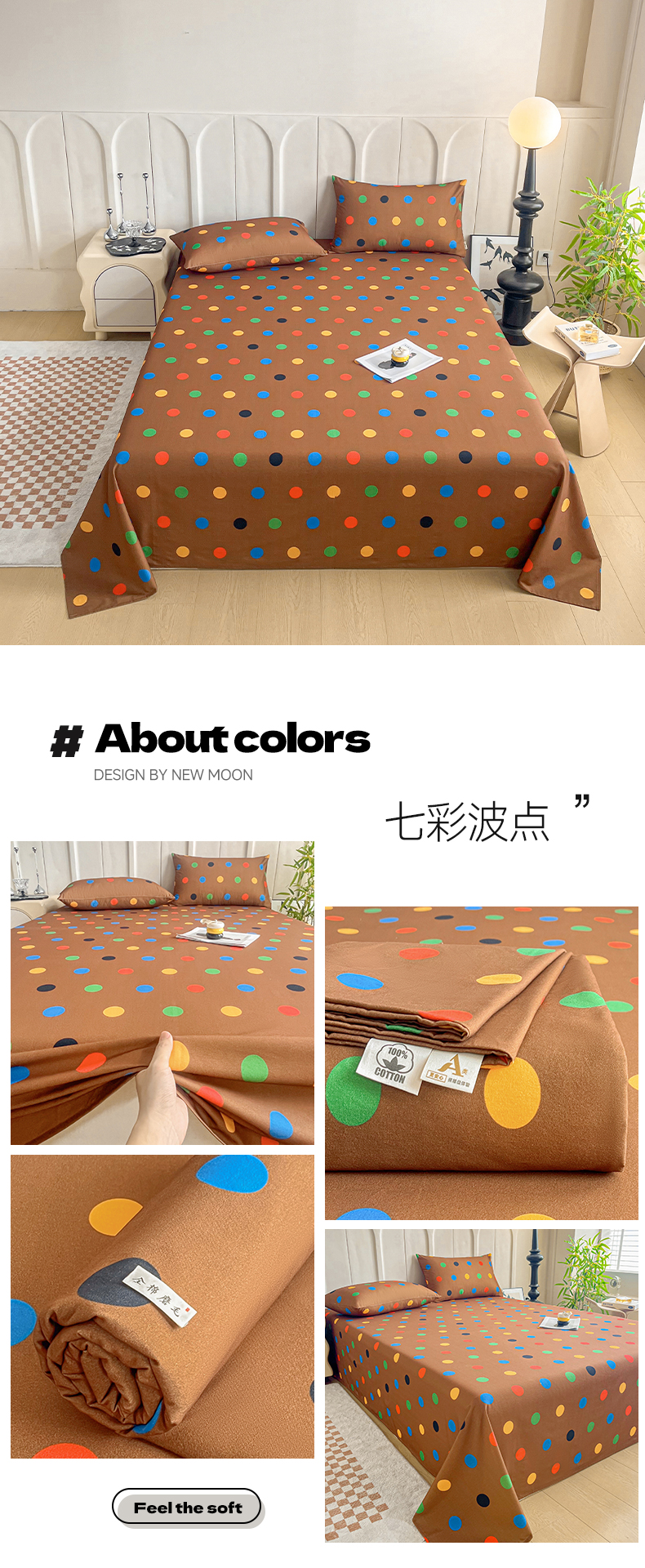 慕梵家居2025新款100%全棉磨毛单床单 七彩波点