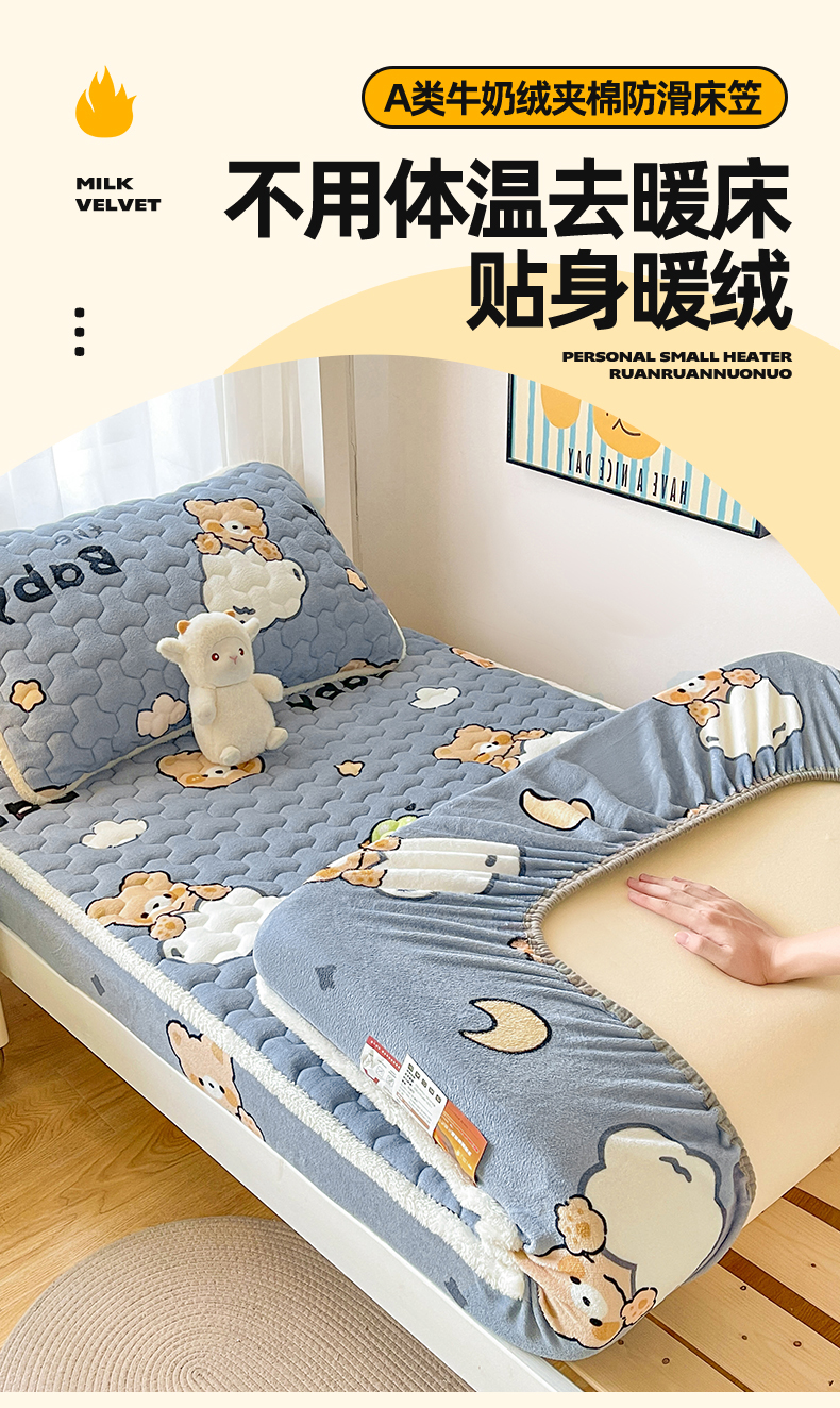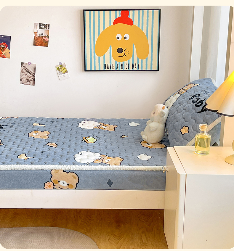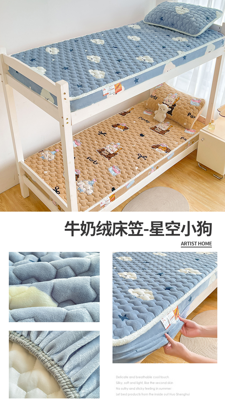 • 91家纺网 家纺一手货源 找家纺 雯豆家纺 2025新款学生上下铺加厚牛奶绒夹棉床笠宿舍大学生床垫保护套 牛奶绒床笠-星空小狗