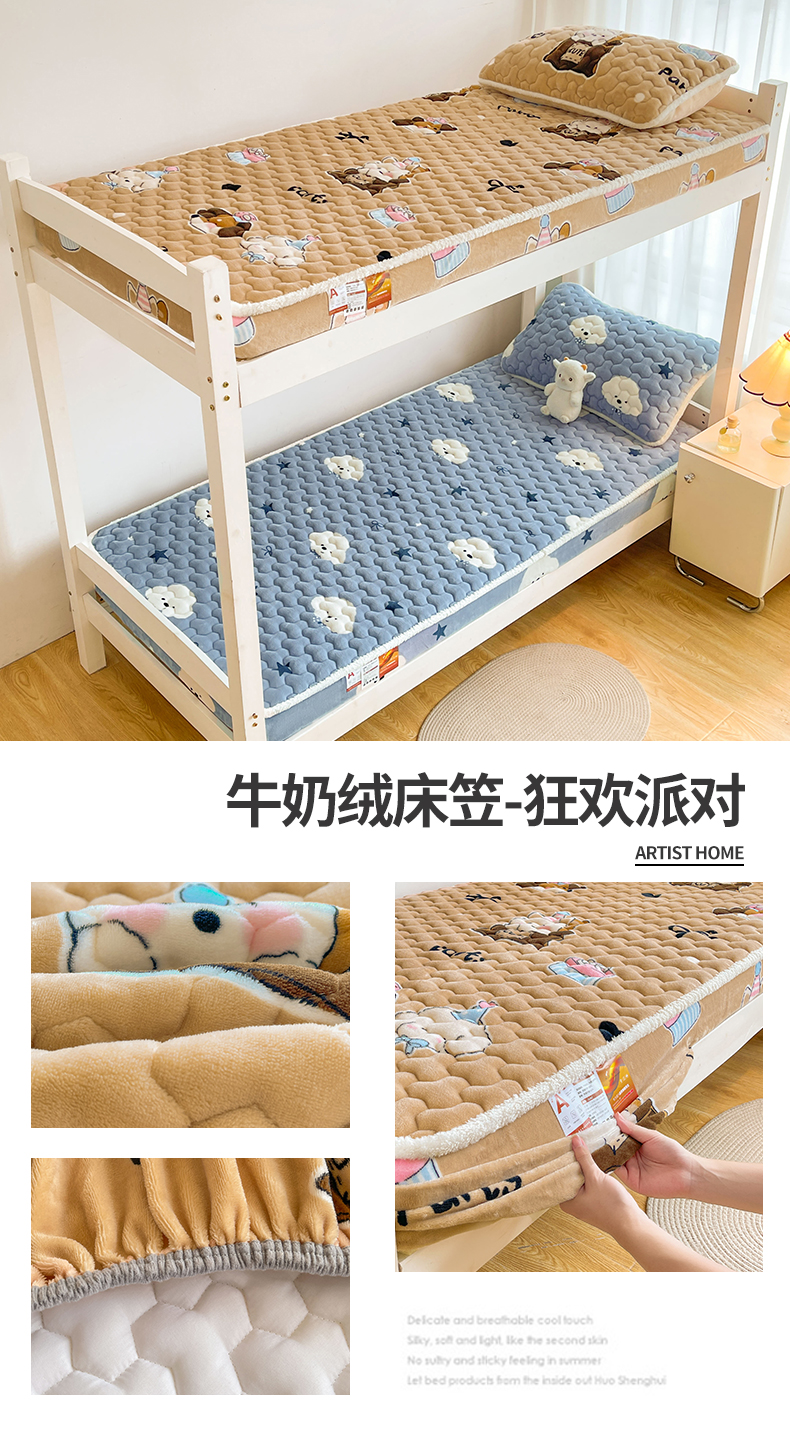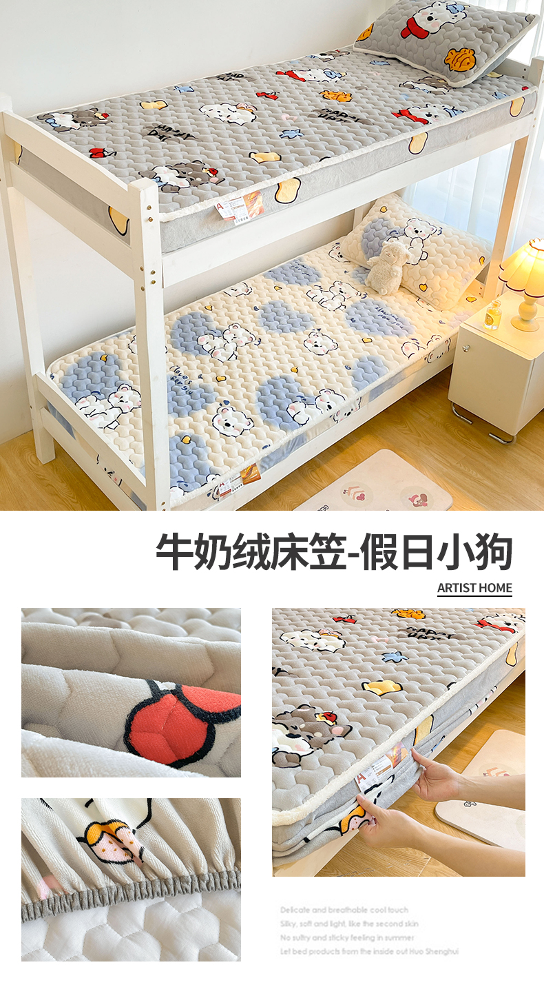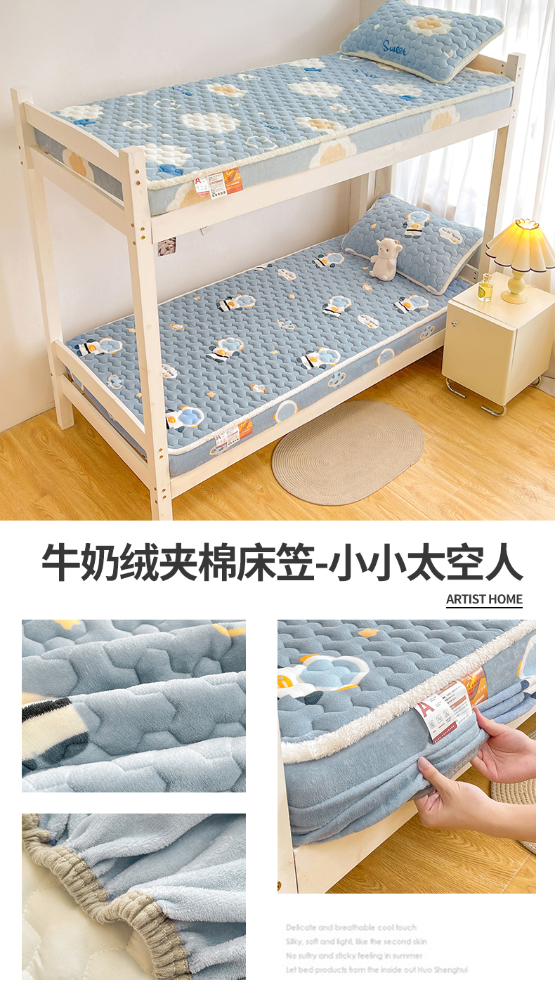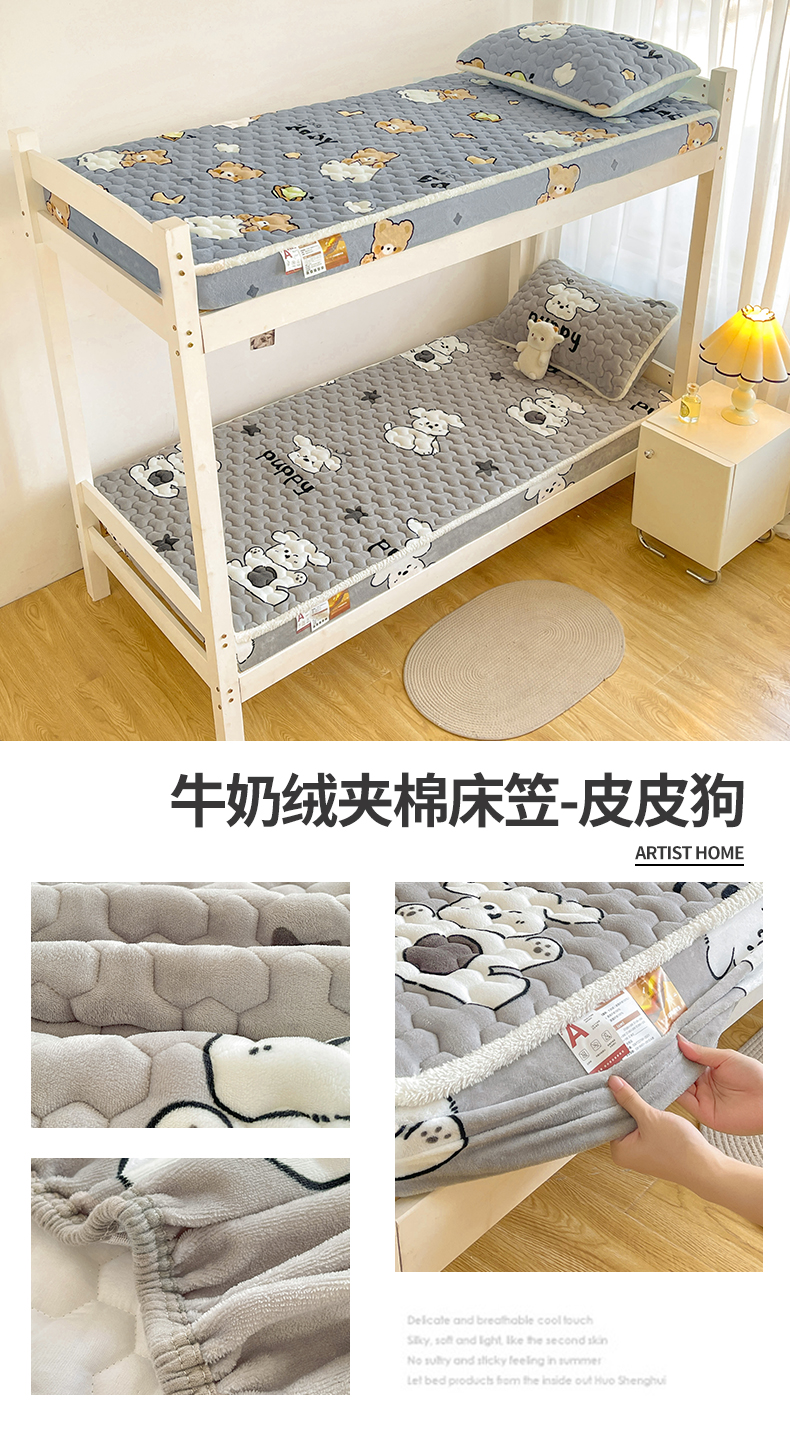 雯豆家纺 2025新款学生上下铺加厚牛奶绒夹棉床笠宿舍大学生床垫保护套 牛奶绒床笠-星空小狗