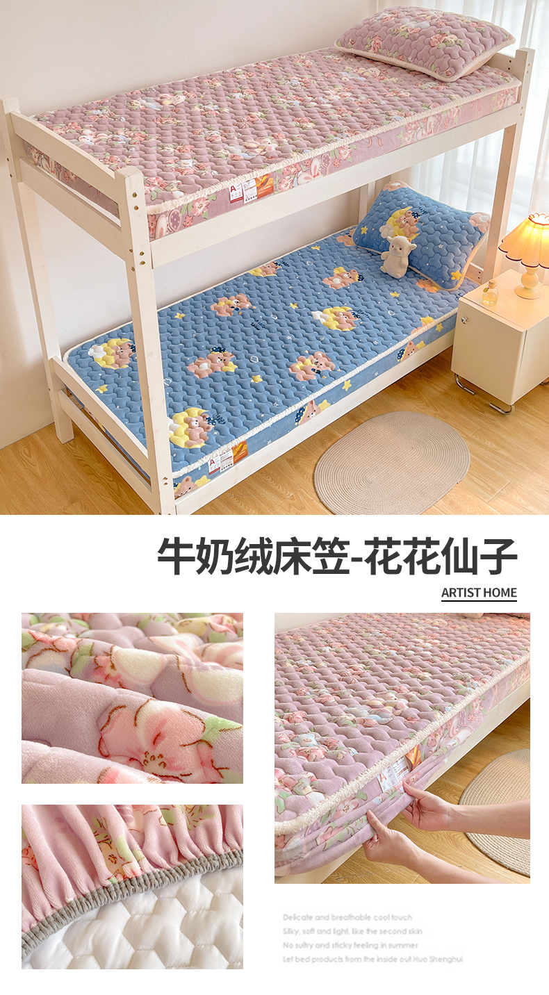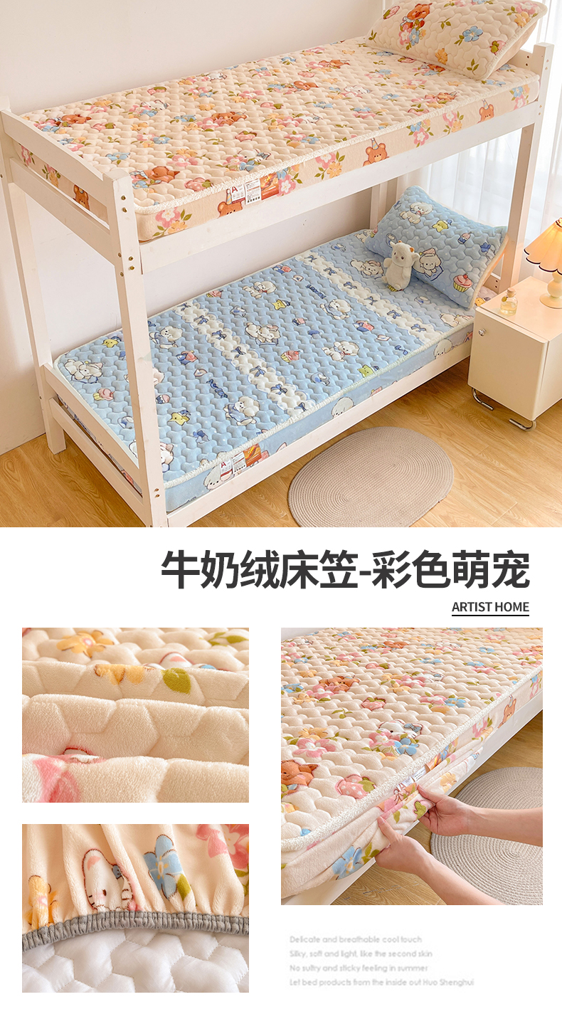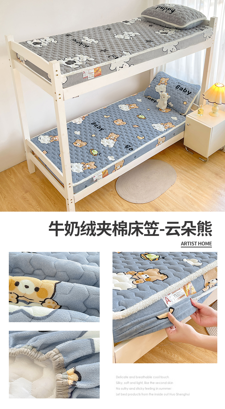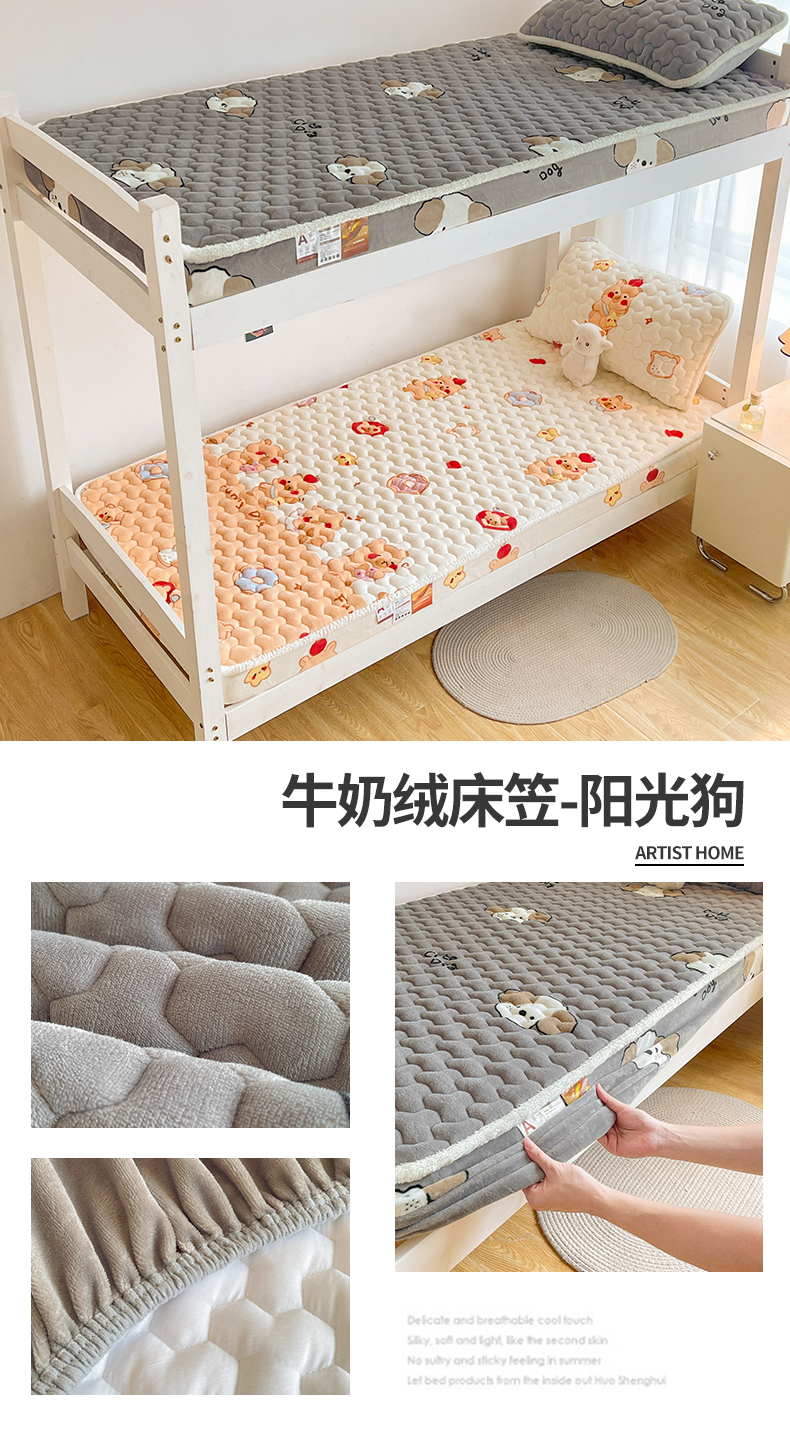 雯豆家纺 2025新款学生上下铺加厚牛奶绒夹棉床笠宿舍大学生床垫保护套 牛奶绒床笠-星空小狗