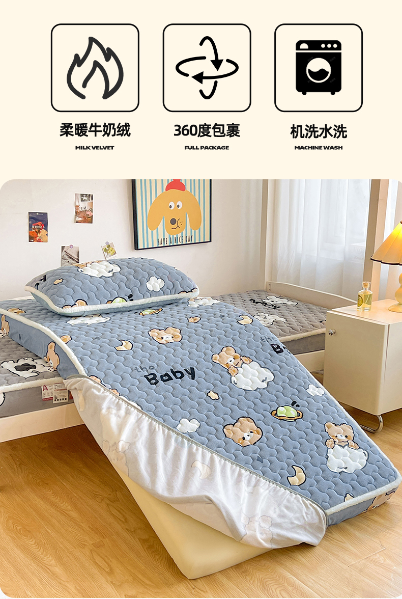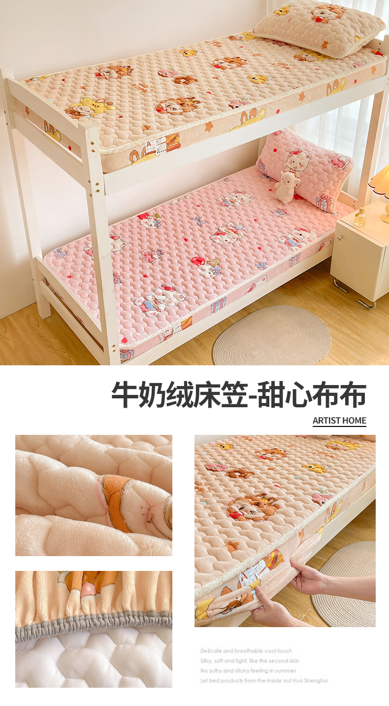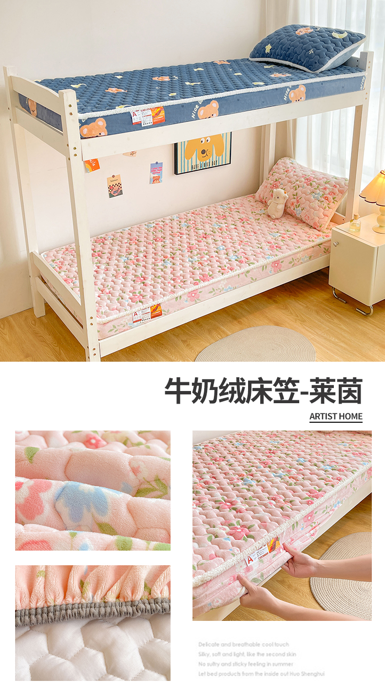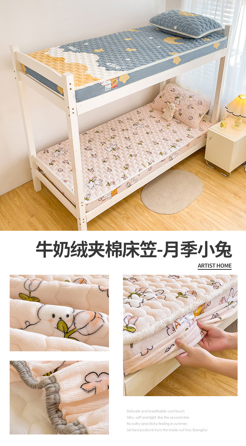 雯豆家纺 2025新款学生上下铺加厚牛奶绒夹棉床笠宿舍大学生床垫保护套 牛奶绒床笠-星空小狗