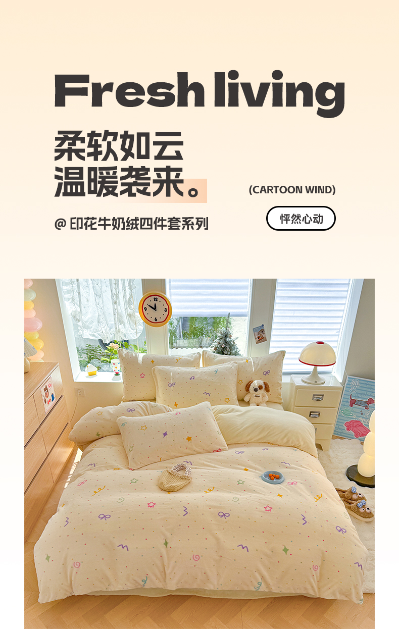 (总)酱子 2025新款牛奶绒印花四件套,D波点叠影,D桃漾绮梦,D兔眠花笺,D蓝调逸境,D蕾丝萌境,D绯色腊肠趣,D爱心蝴蝶结,D爱心絮语,D蝴蝶结狗,D花汐,D暖熊星芒,D碎花喵喵,D星彩梦,D星喵萌熊甜梦园