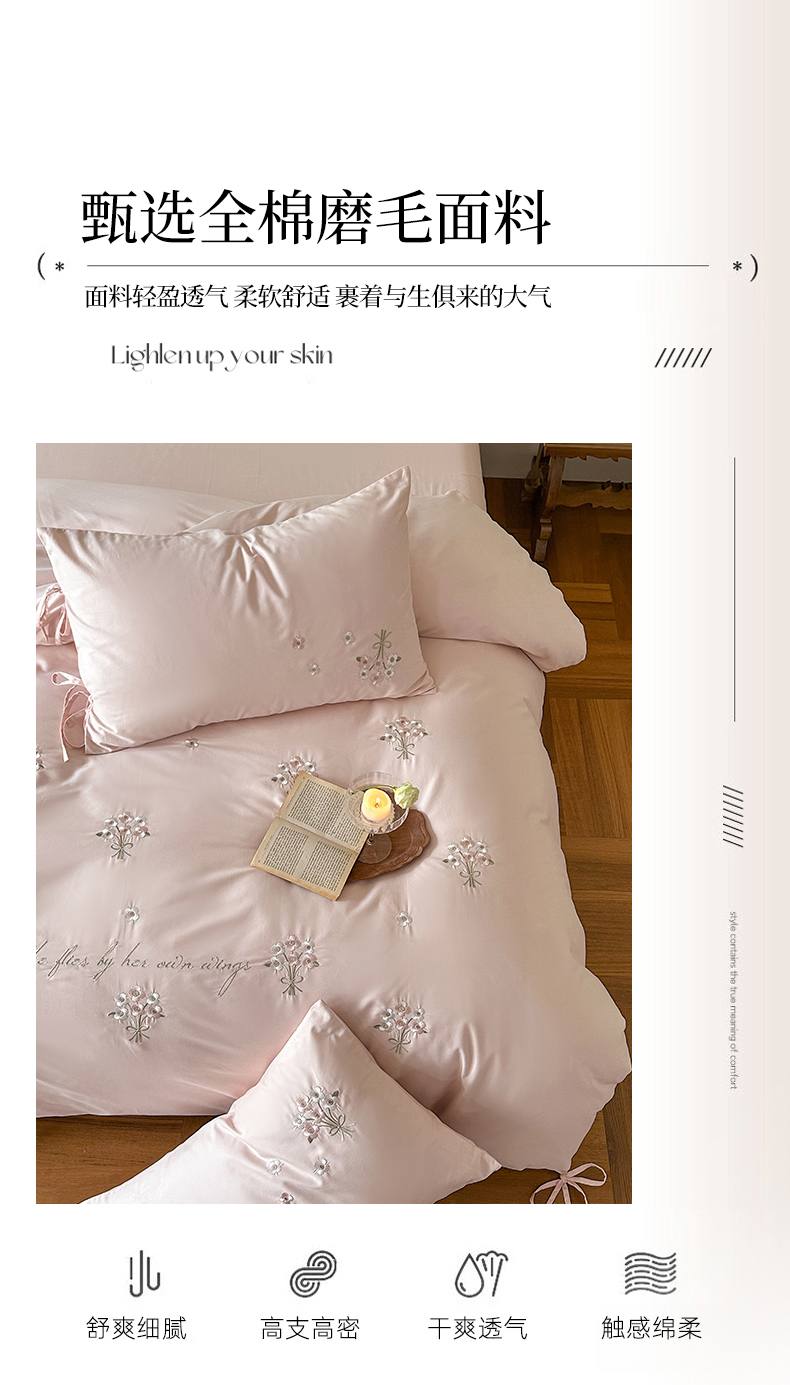 当前位置: 91家纺网 > 商品网购 > 床品套件 > 四件套 > 其它四件套 > FORTWO家纺原创设计(FOR TWO家纺) 2025新款全棉纯棉纯色磨毛绣花系带款四件套-栀子花信 栀子花信-粉