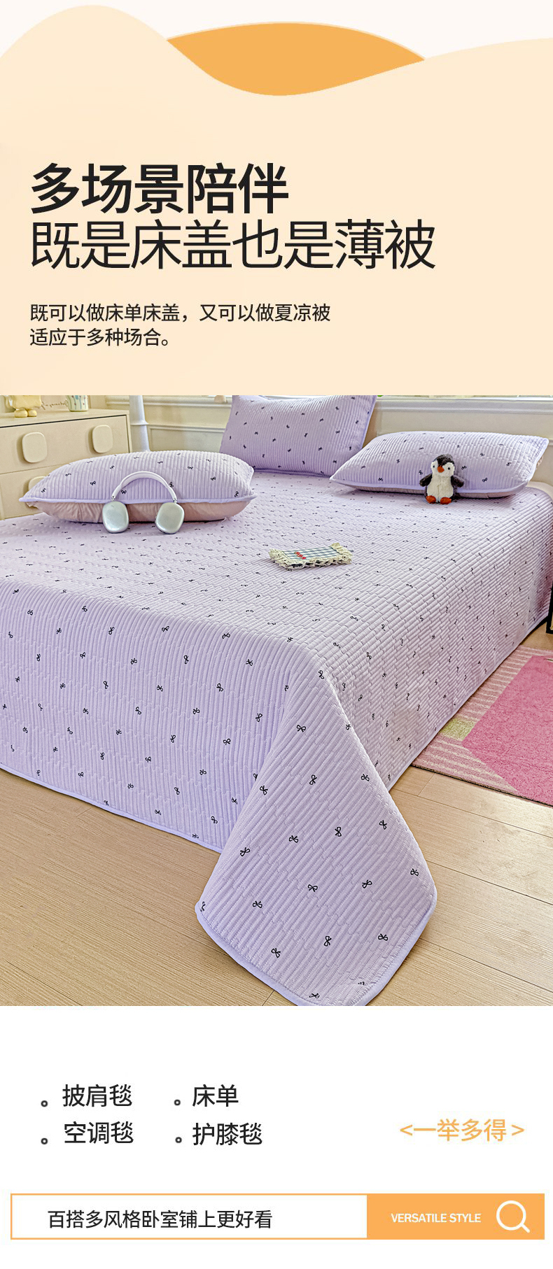恒尚居 2025新款双层纱床盖床盖单品单床盖云感夹棉床单床垫软床垫-四季款【系列二】 组合图仅供展示不可下单