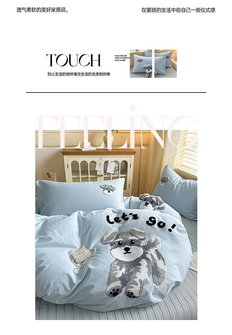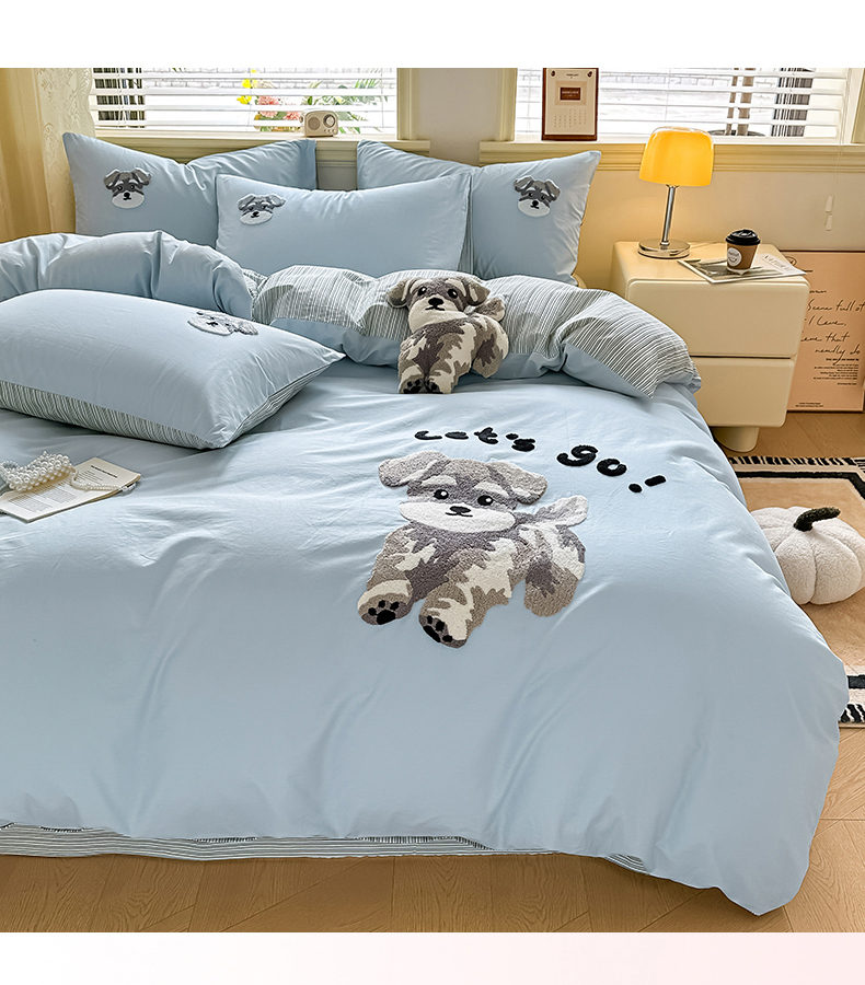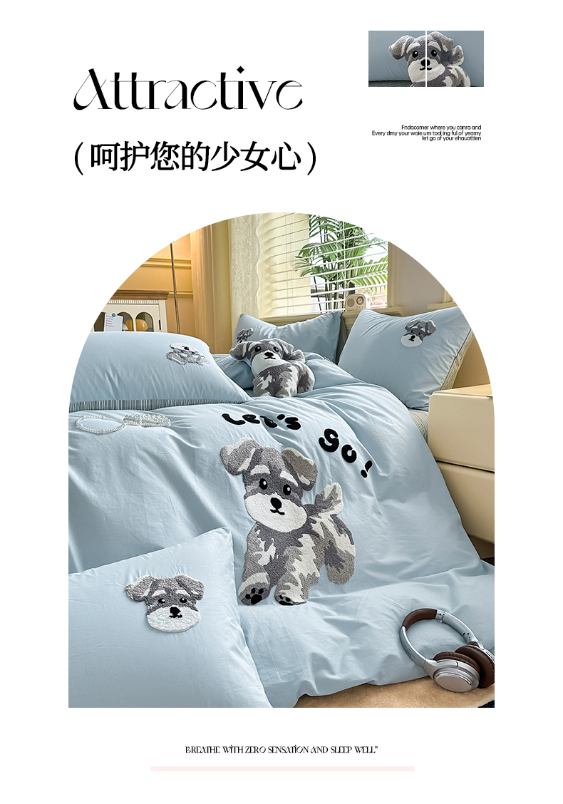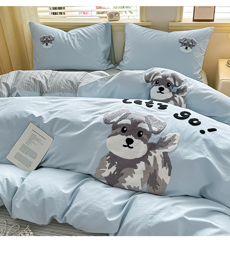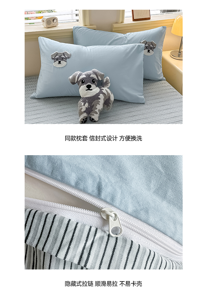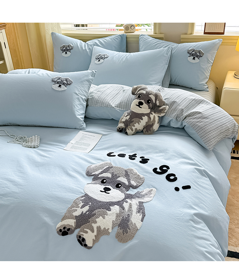 当前位置: 91家纺网 > 商品网购 > 床品套件 > 四件套 > 全棉普通四件套 > 寐居家纺 2025新款全棉纯棉13372毛巾绣四件套 俏皮狗