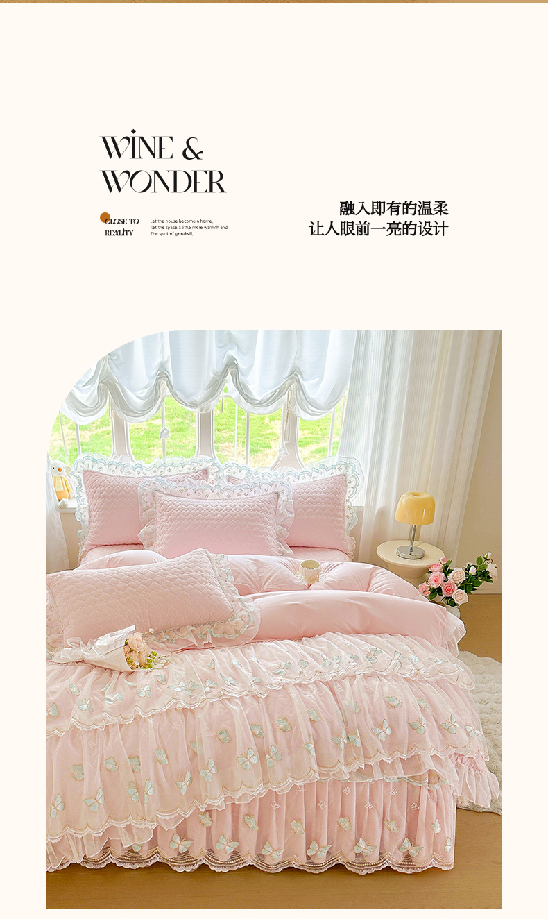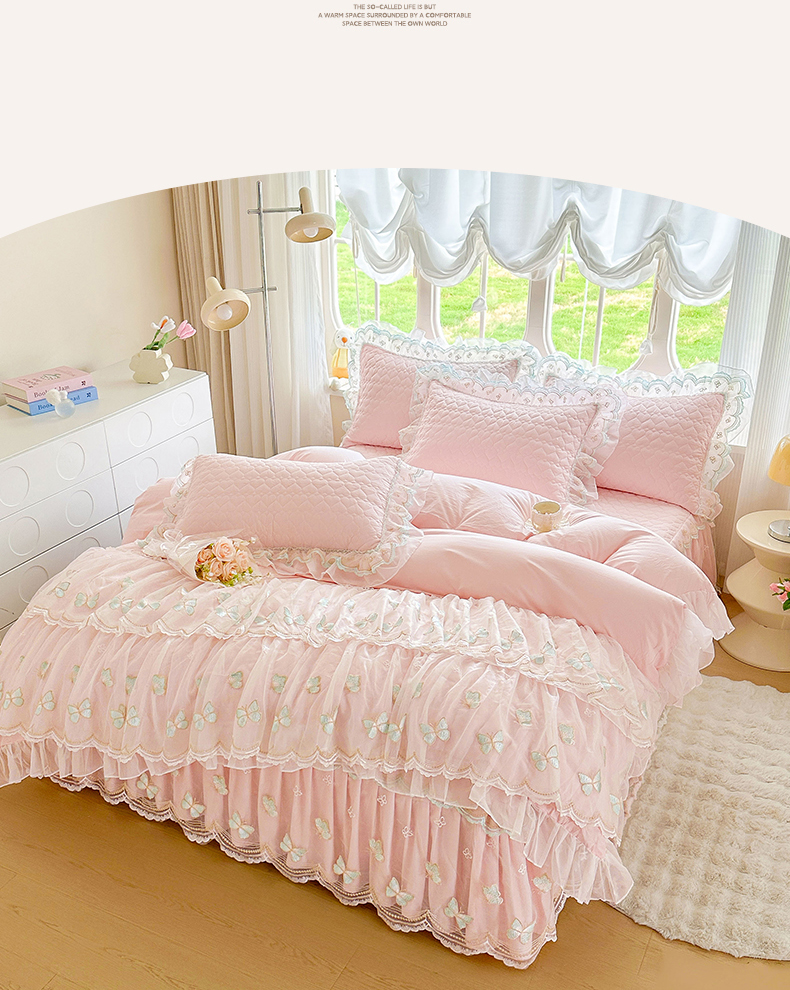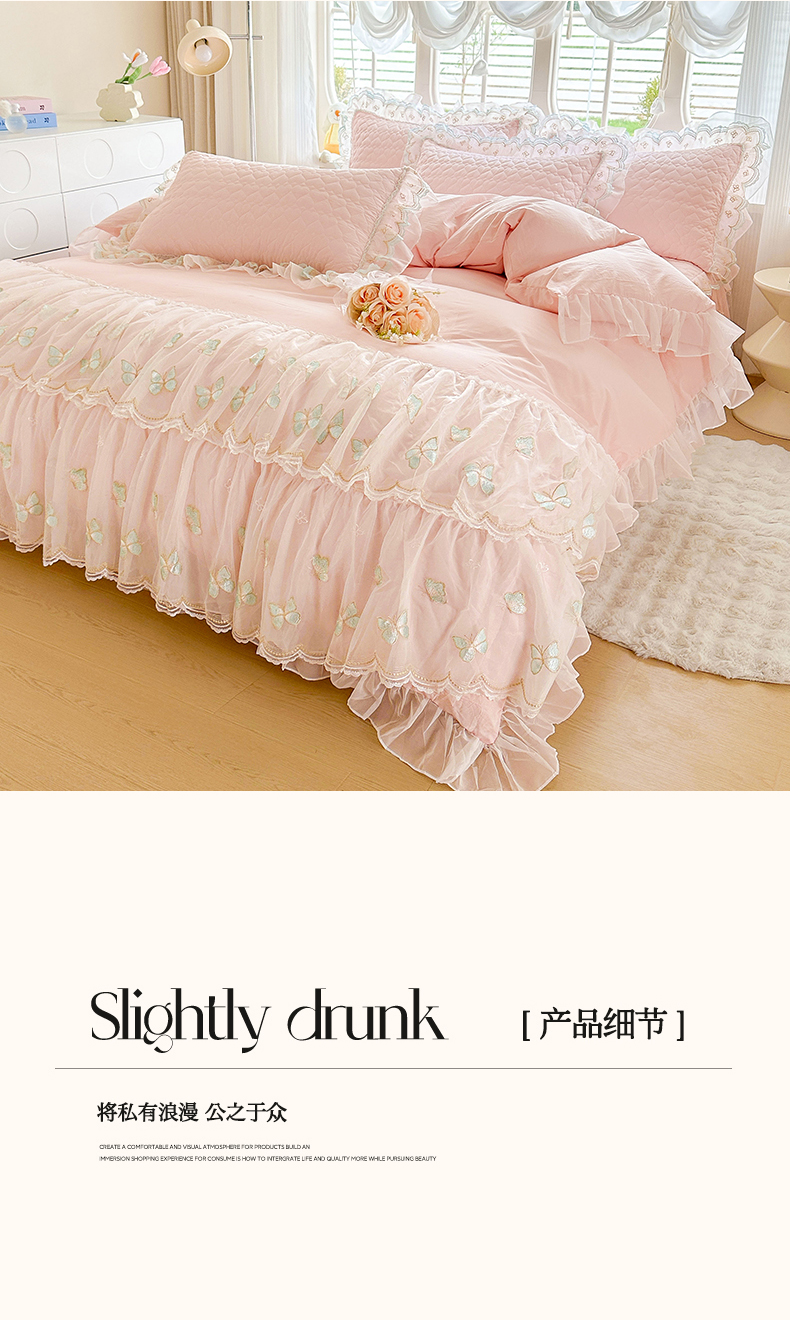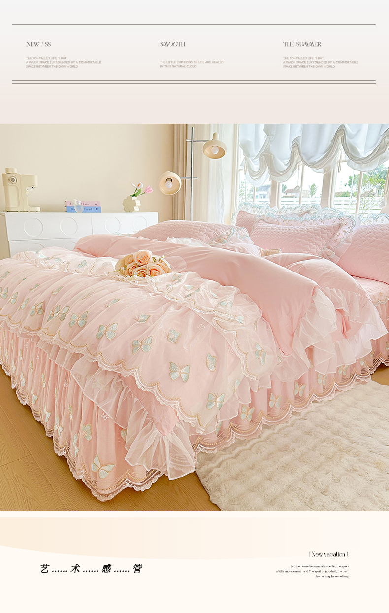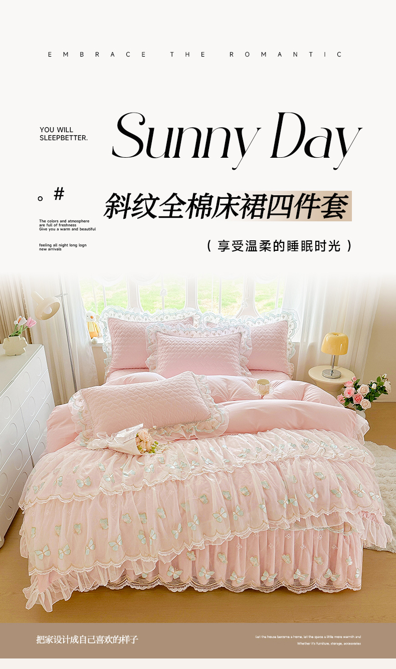 当前位置: 91家纺网 > 商品网购 > 床品套件 > 四件套 > 其它四件套 > 罗艺轩 2025新款全棉纯棉斜纹工艺床裙四件套 蓝蝴蝶-粉色