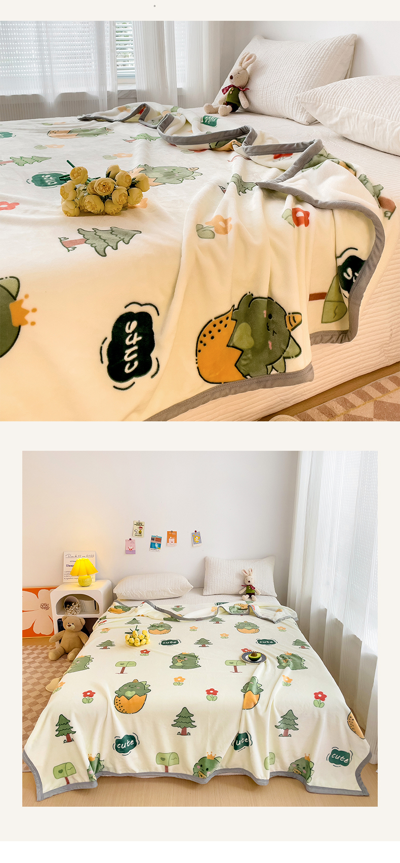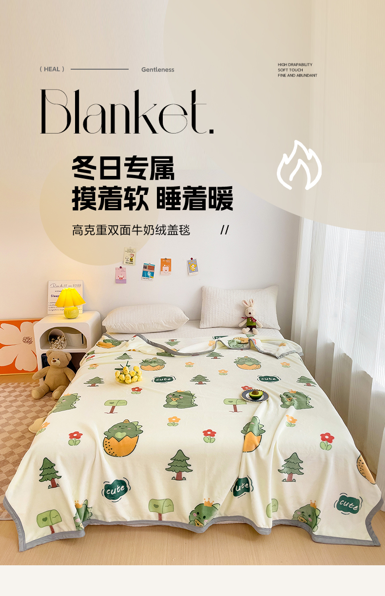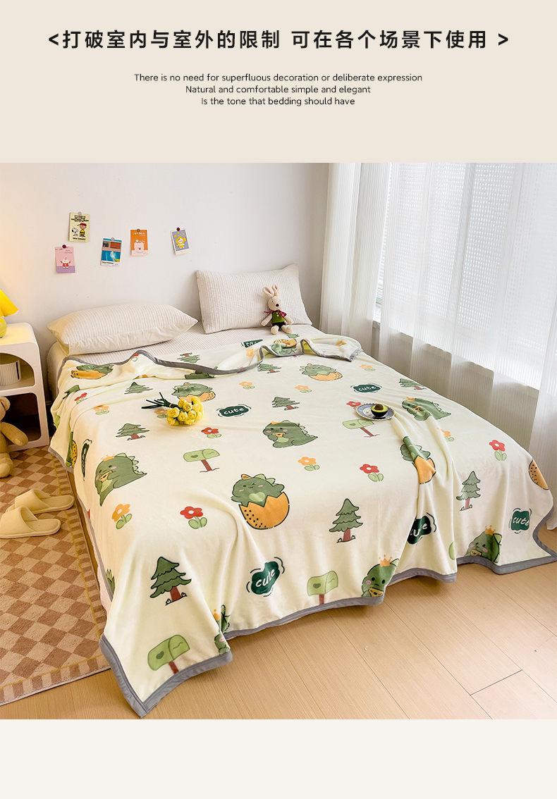启发毛毯 2025新款高克重双面牛奶绒盖毯 小恐龙