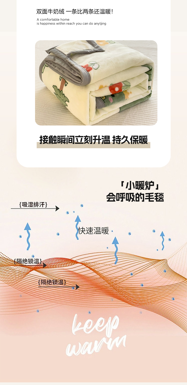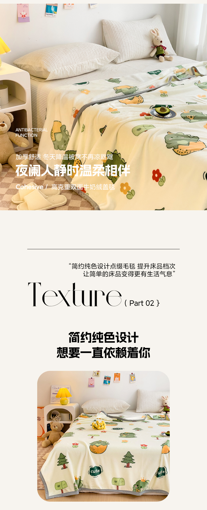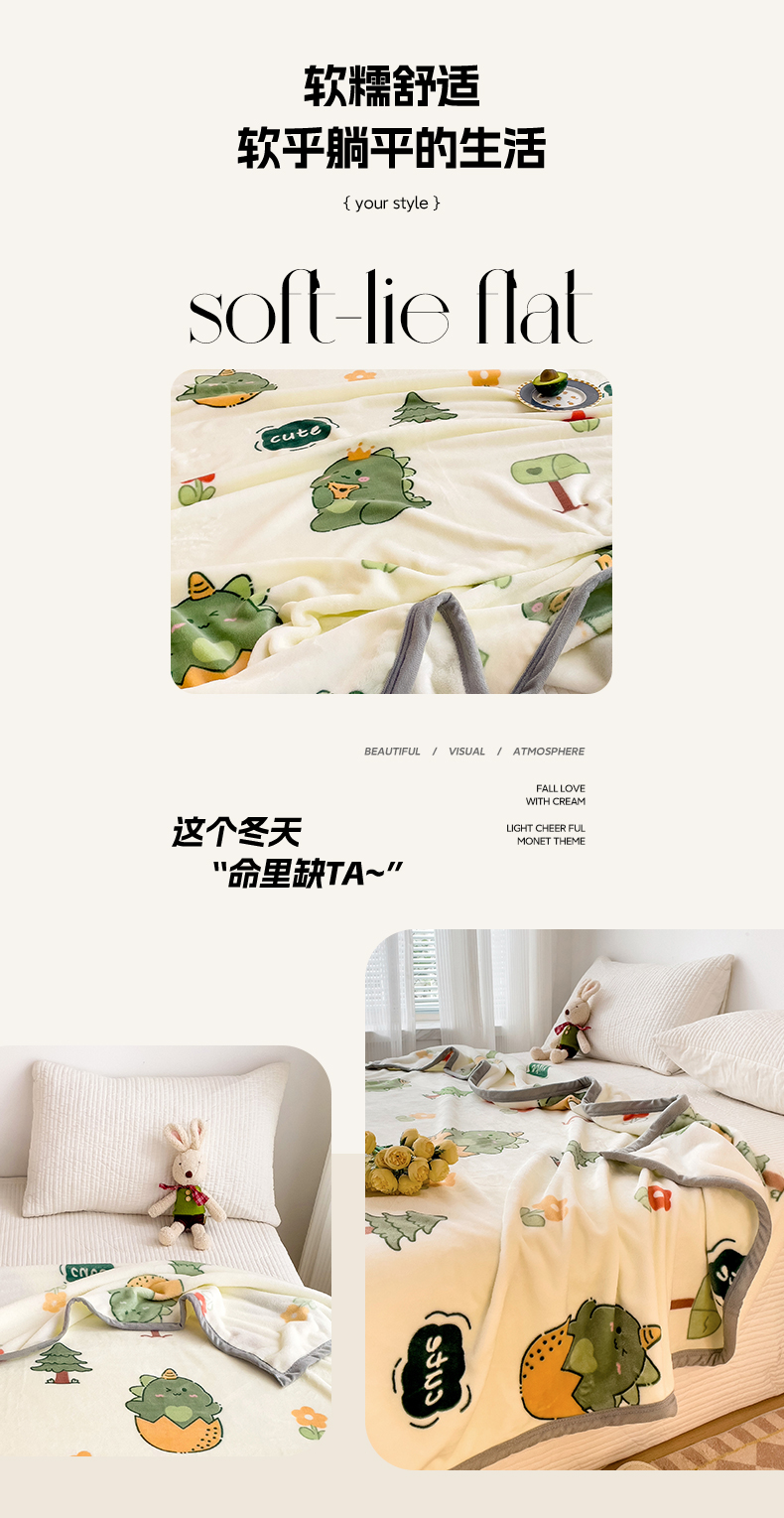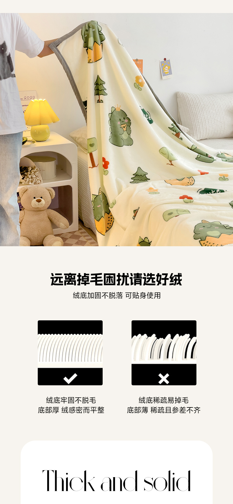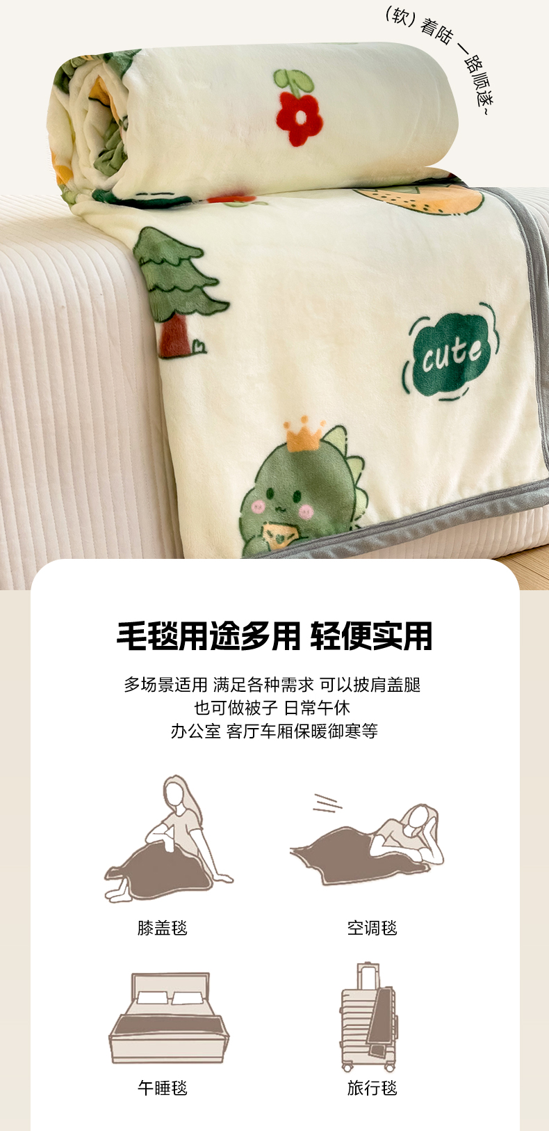 商品名称:启发毛毯 2025新款高克重双面牛奶绒盖毯 小恐龙