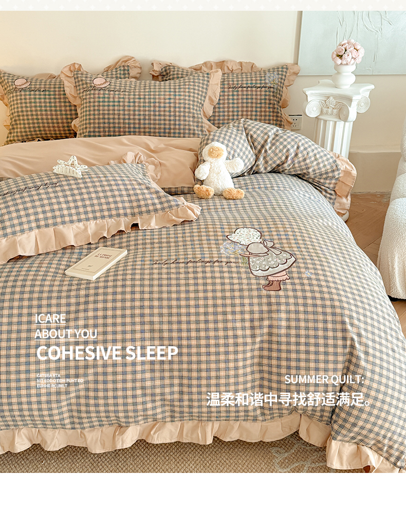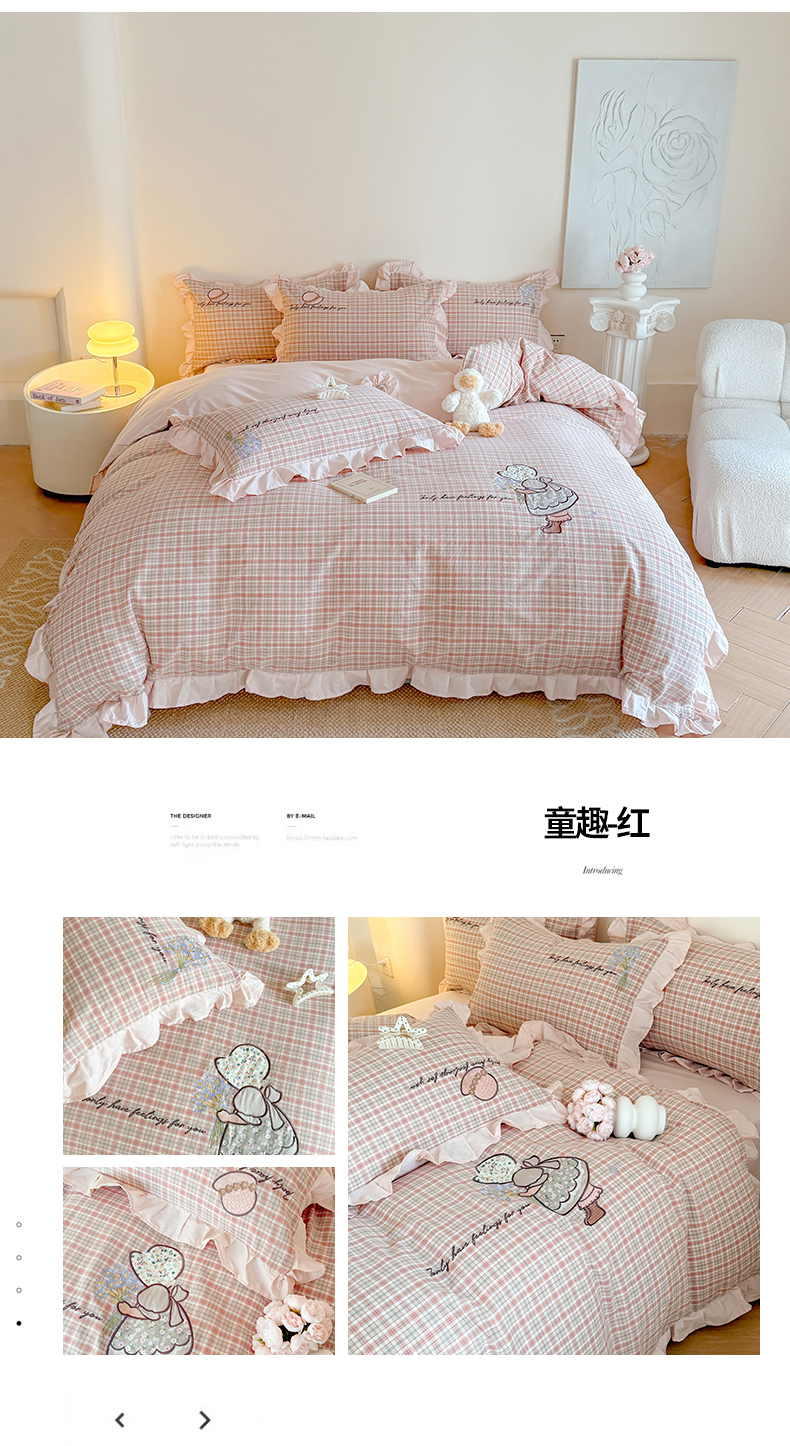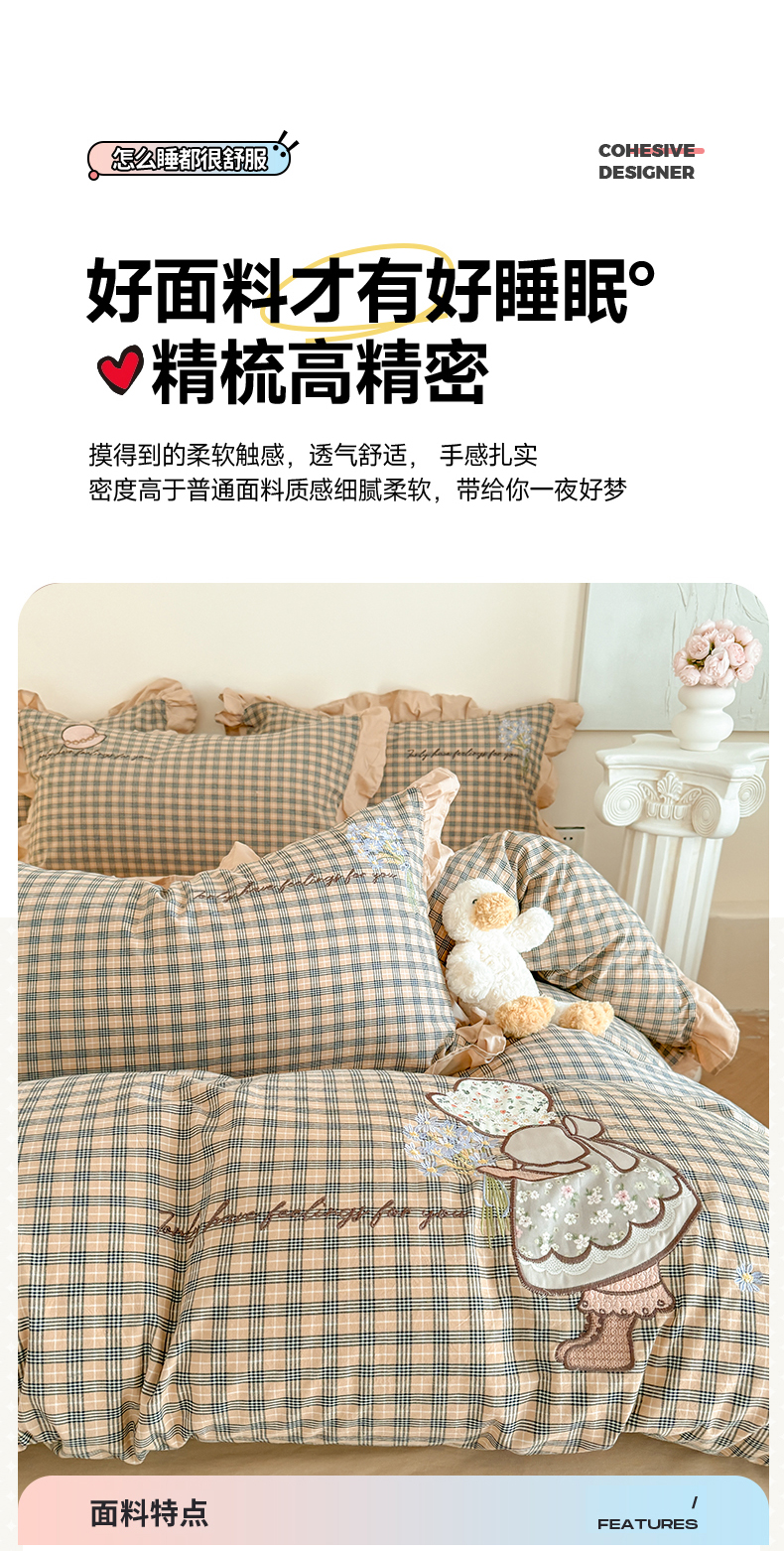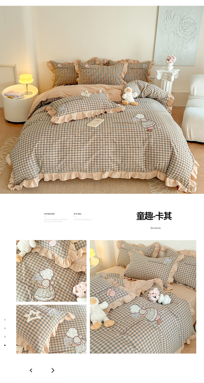 当前位置: 91家纺网 > 商品网购 > 床品套件 > 四件套 > 水洗棉四件套 > 蜜柚 2025秋冬新款色织水洗棉贴布花边款四件套 童趣-卡其