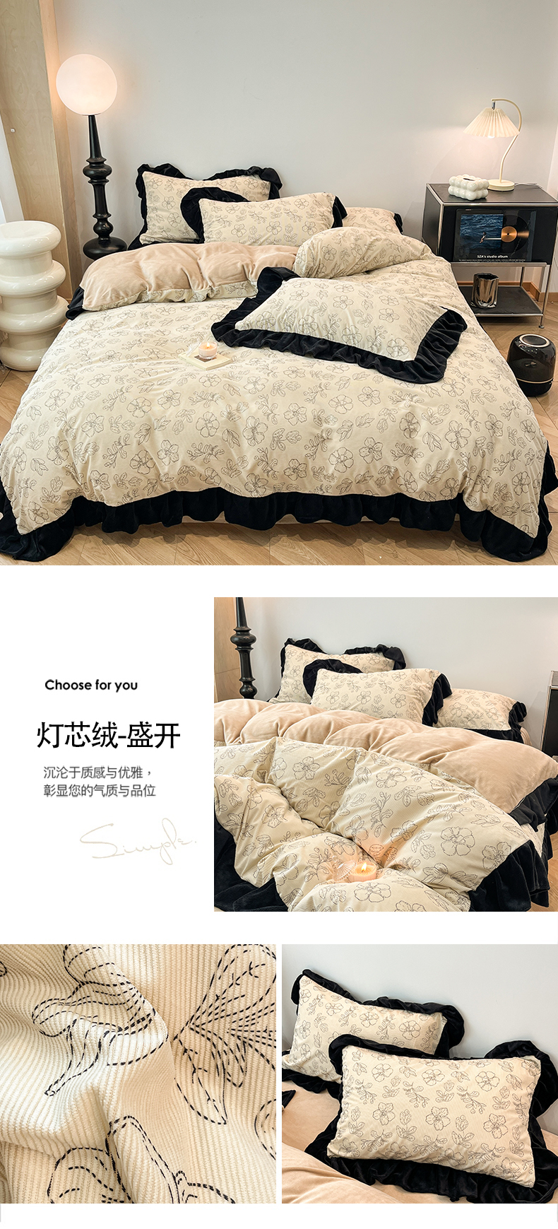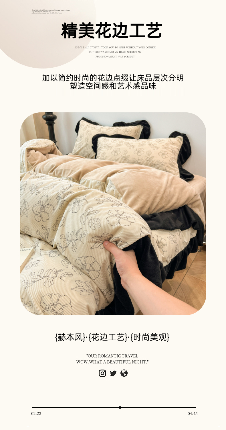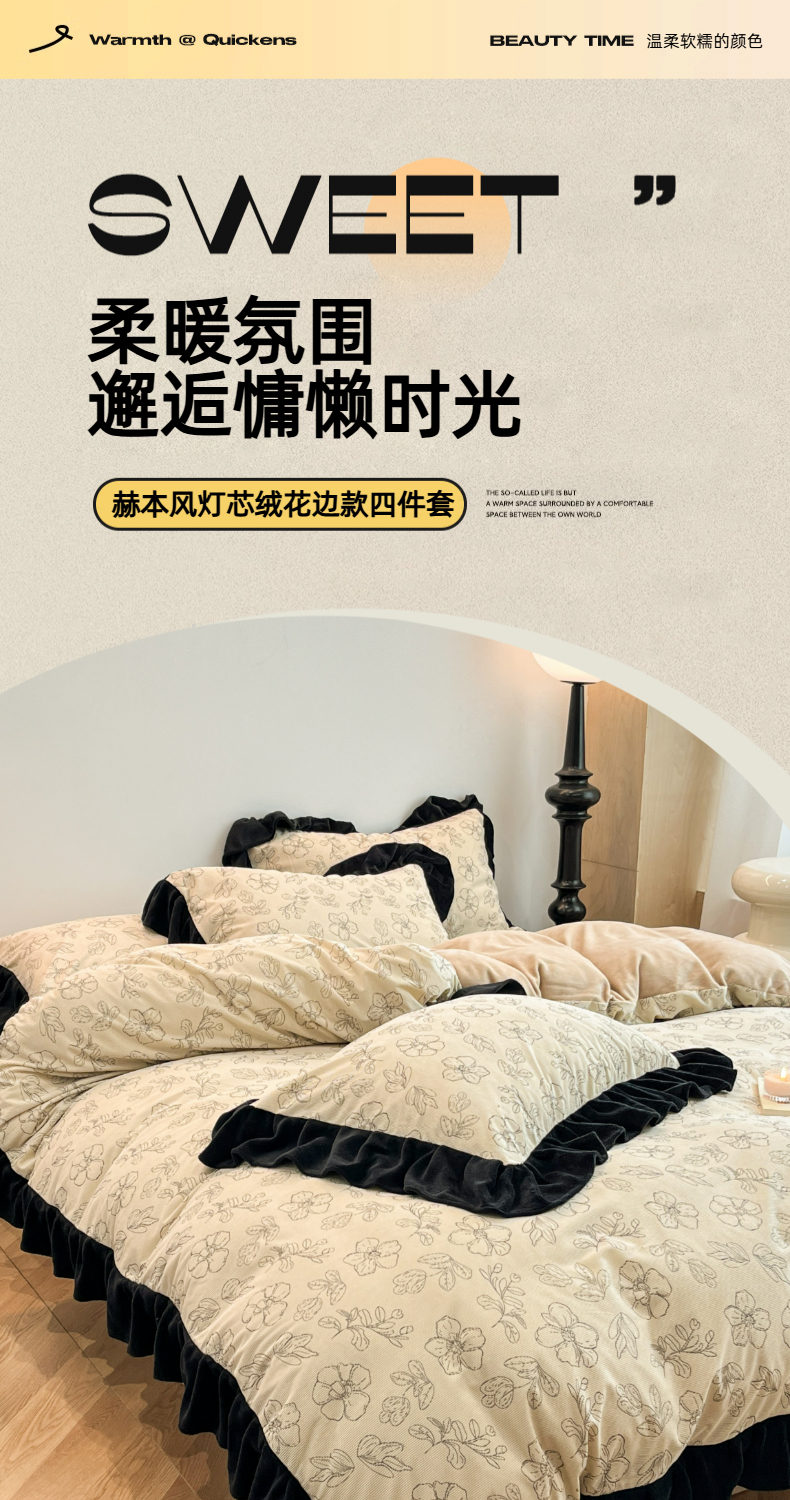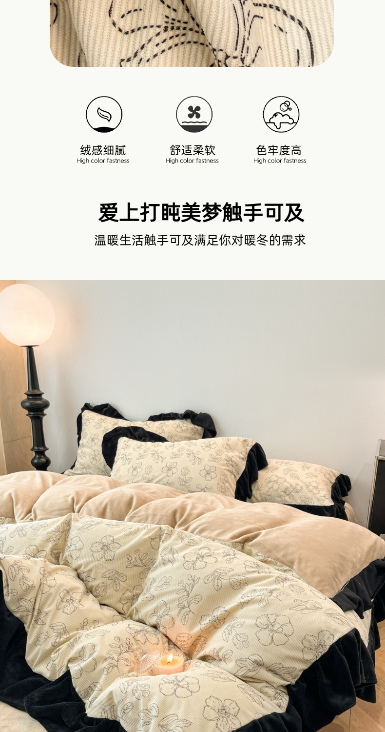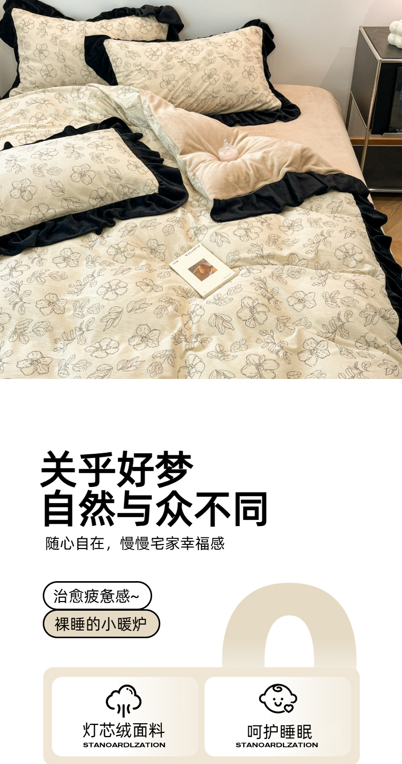 当前位置: 91家纺网 > 商品网购 > 床品套件 > 四件套 > 其它四件套 > 金爱家 2025新款赫本风灯芯绒-花边款四件套 灯芯绒-盛开