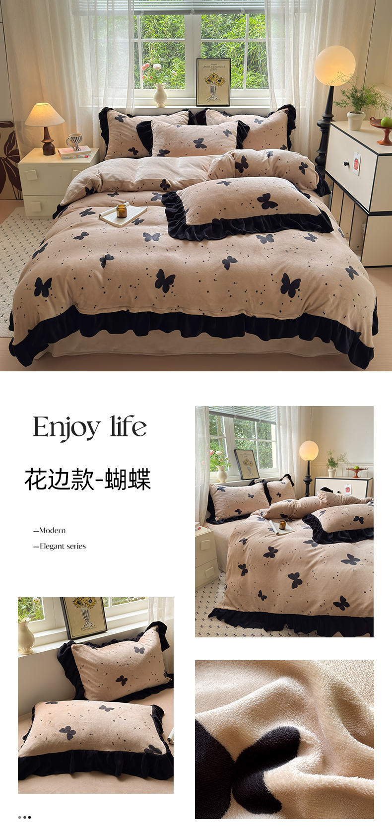 当前位置: 91家纺网 > 商品网购 > 床品套件 > 四件套 > 牛奶绒四件套 > 2025新款赫本风牛奶绒-花边款四件套 花边款-蝴蝶