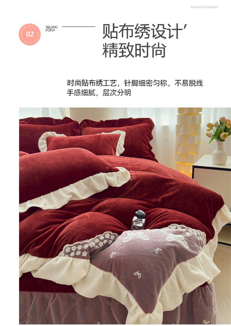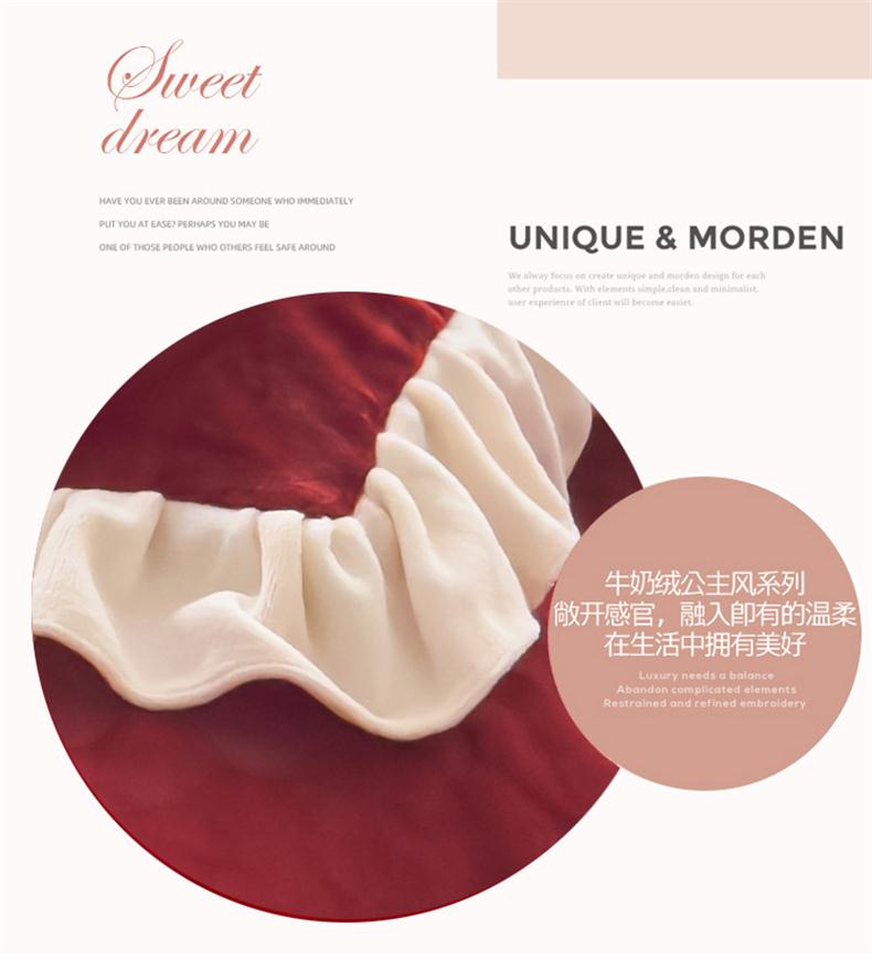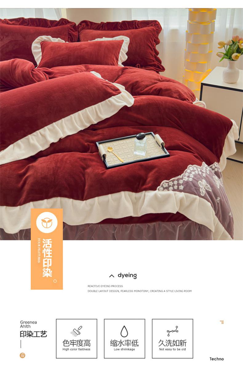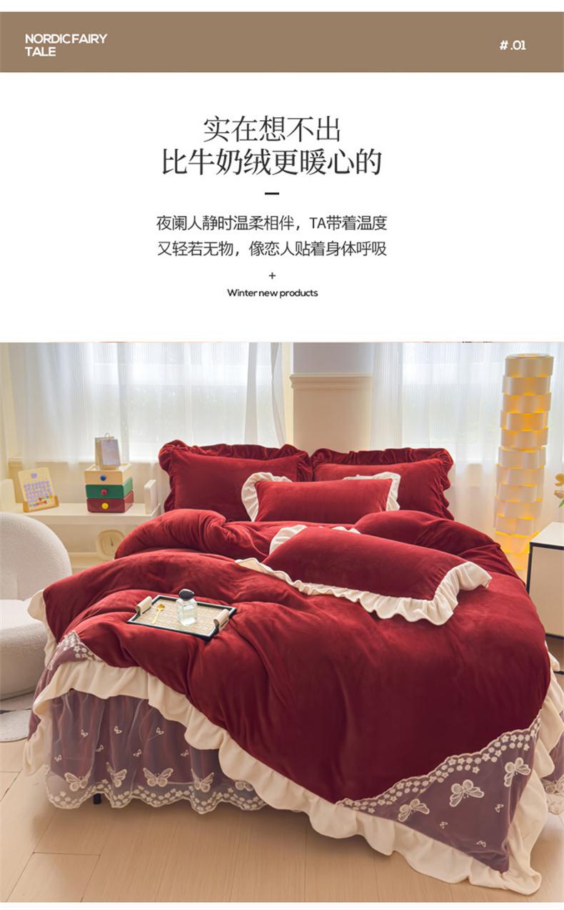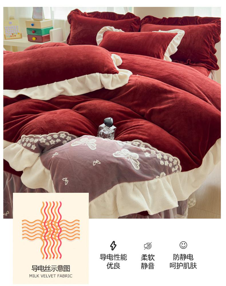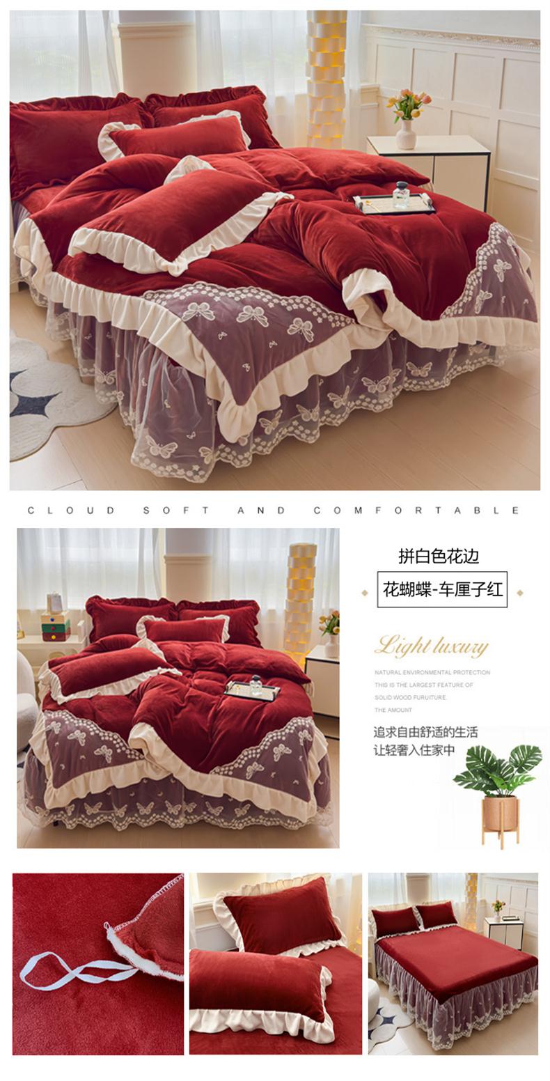 当前位置: 91家纺网 > 商品网购 > 床品套件 > 四件套 > 牛奶绒四件套 > 睡美人 2025韩版蕾丝牛奶绒套件公主风床裙床单款四件套 花蝴蝶-车厘子红拼白蕾丝