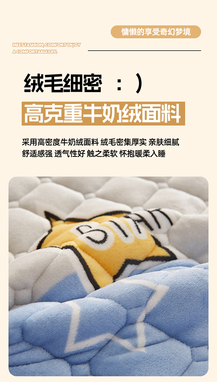 • 91家纺网 家纺一手货源 找家纺 (总)奇丝雅 2025新款A类牛奶绒泡泡绒床褥床垫床盖兔毛绒家用学生宿舍上下铺寝室褥子软垫床护垫夹棉(大床)场景二,星星猫咪,月亮湾,趴趴狗,繁星,爱心咖,樱桃猫咪,幻影灰,暖绒蓝,清新绿,柔和蓝