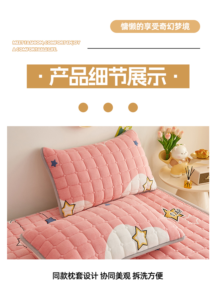 (总)奇丝雅 2025新款A类牛奶绒泡泡绒床褥床垫床盖兔毛绒家用学生宿舍上下铺寝室褥子软垫床护垫夹棉(大床)场景二,星星猫咪,月亮湾,趴趴狗,繁星,爱心咖,樱桃猫咪,幻影灰,暖绒蓝,清新绿,柔和蓝