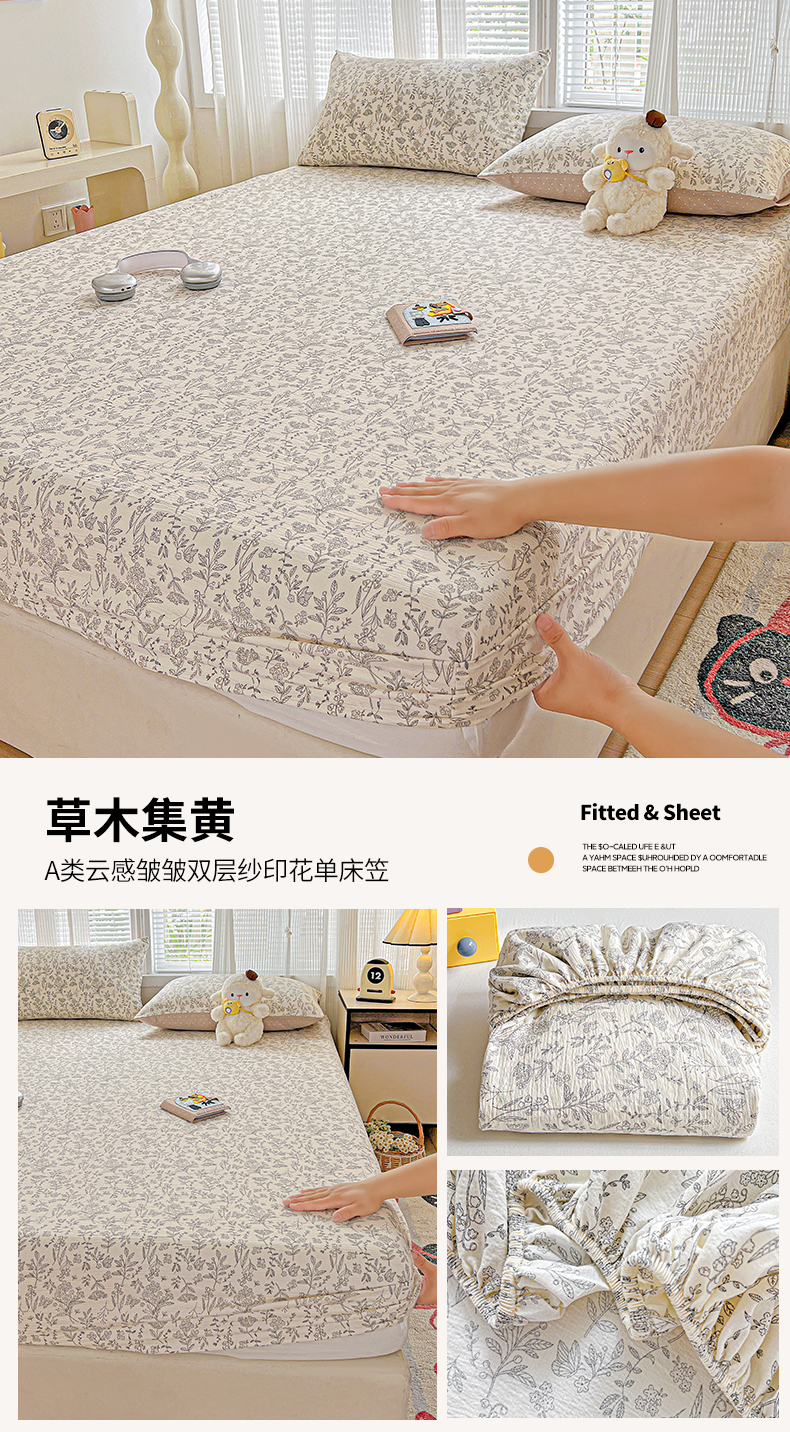 当前位置: 91家纺网 > 商品网购 > 床上用品 > 床笠 > 格真 2025秋冬新款110克高克重提花加厚皱皱纱双层纱印花单床笠 少女季