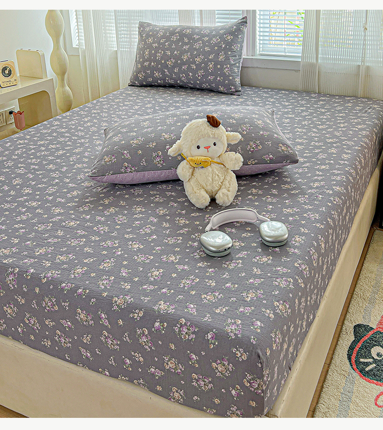 格真 2025秋冬新款110克高克重提花加厚皱皱纱双层纱印花单床笠 少女季