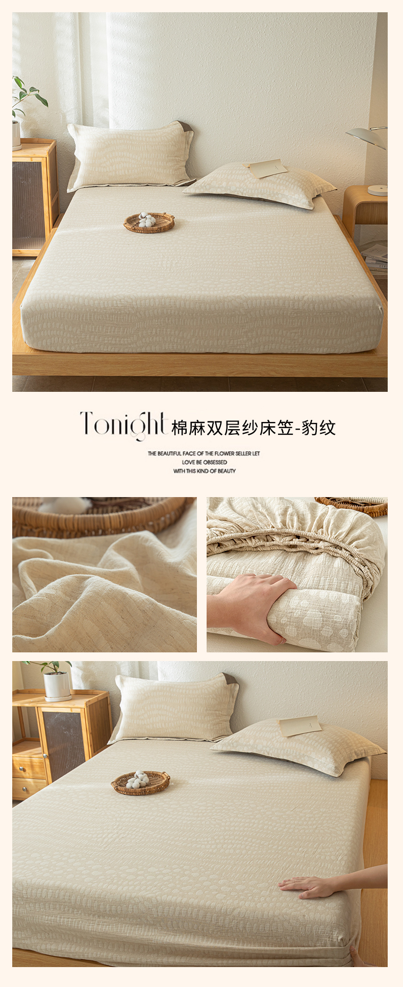• 91家纺网 家纺一手货源 找家纺 眠博士 2025新款A类棉麻双层纱提花床笠 棉麻双层纱床笠-豹纹