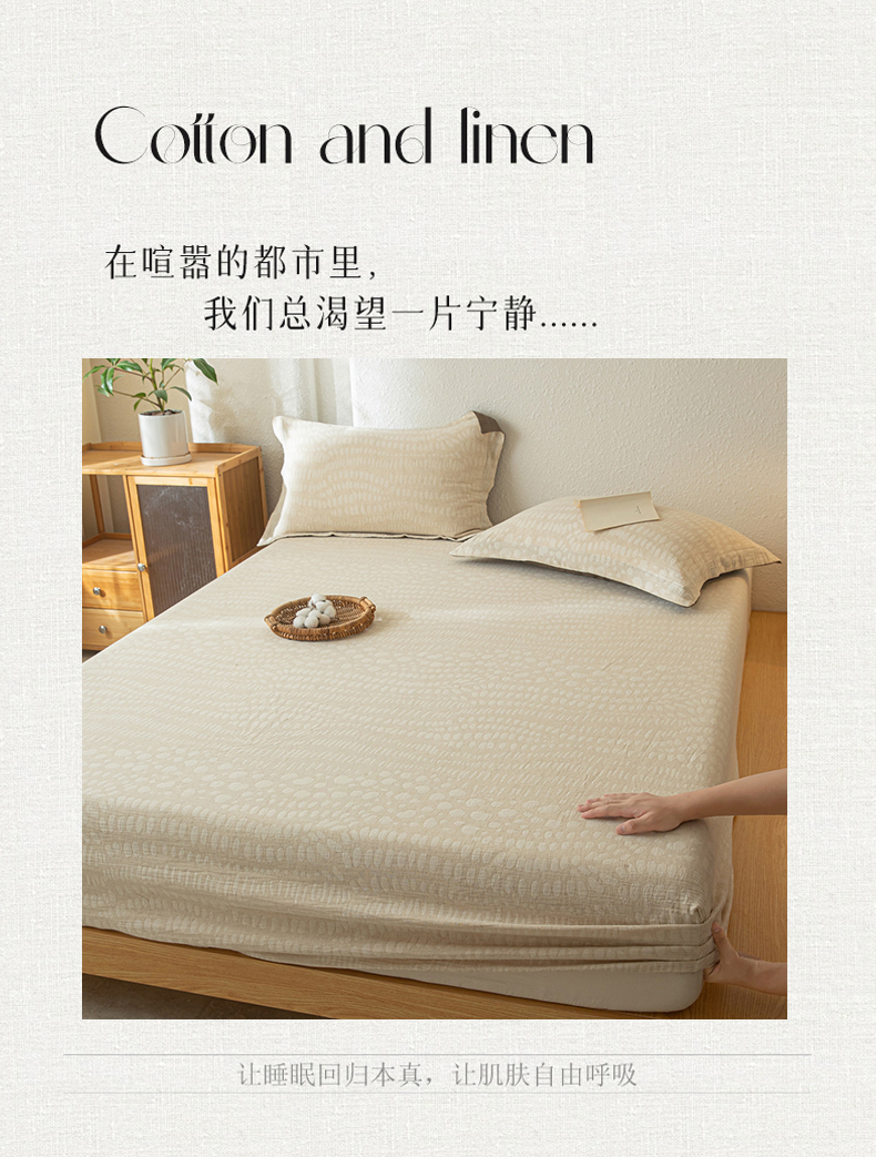 眠博士 2025新款A类棉麻双层纱提花床笠 棉麻双层纱床笠-豹纹