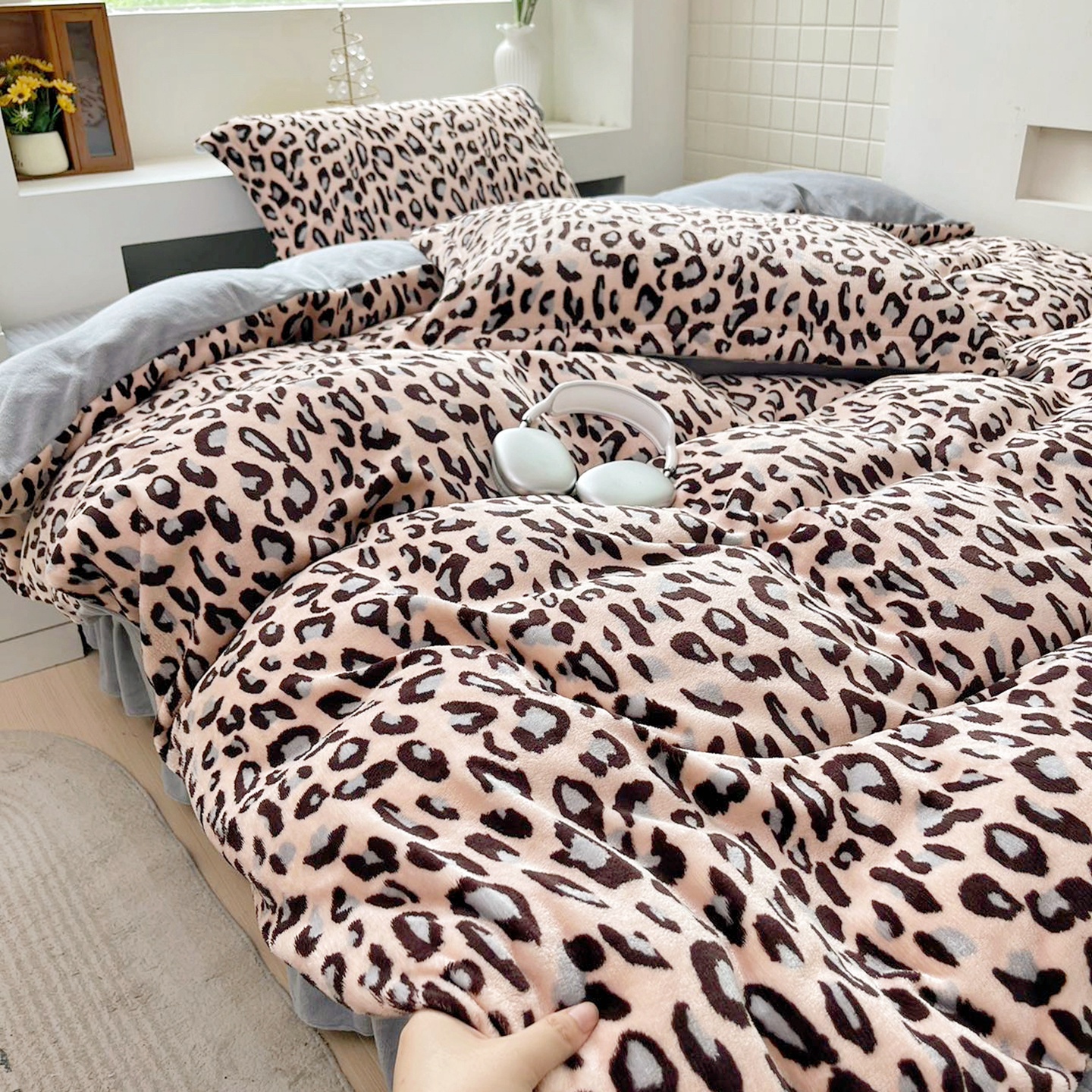 恋尚羽家纺 2025新款印花牛奶绒大床裙床盖四件套 花开半夏