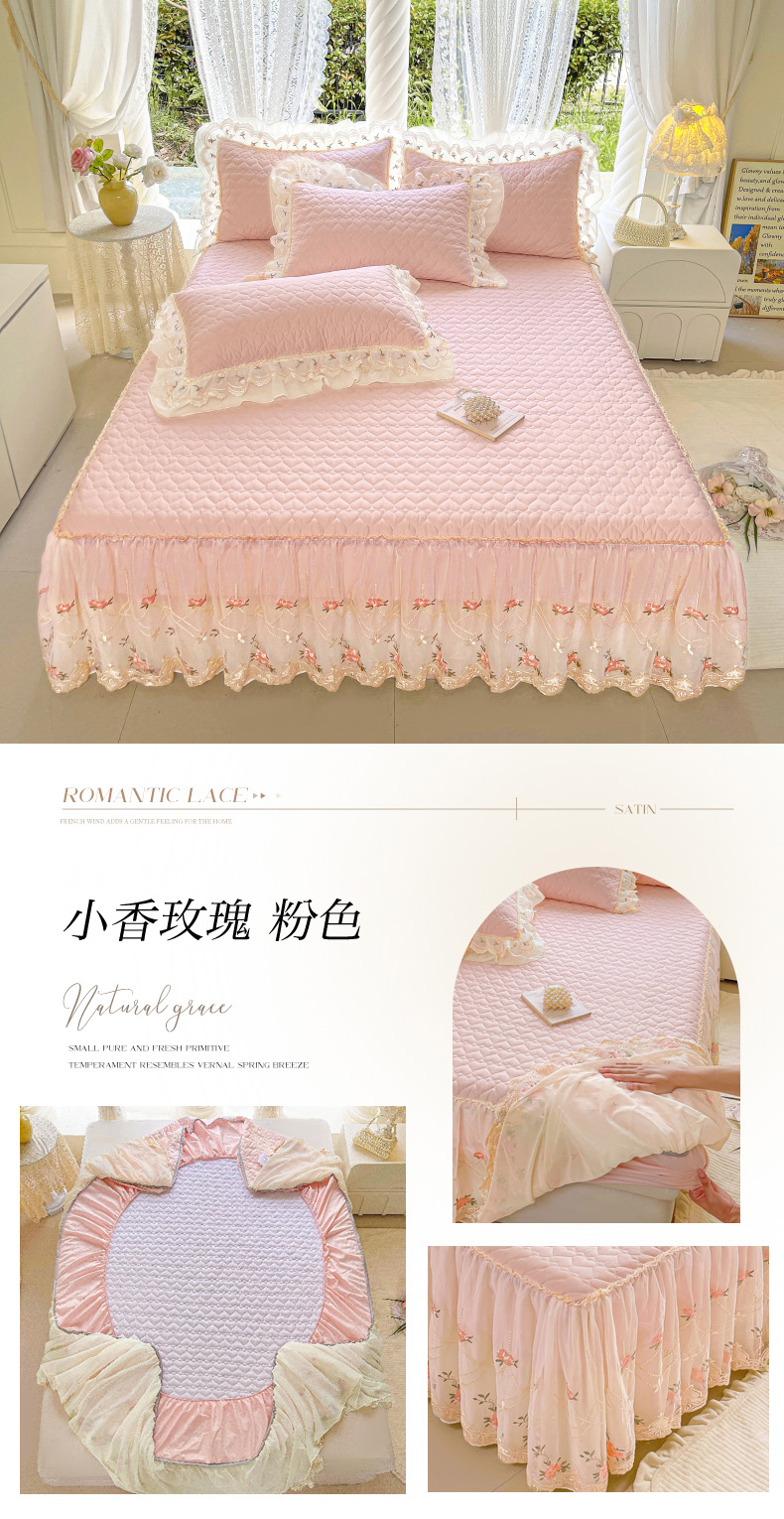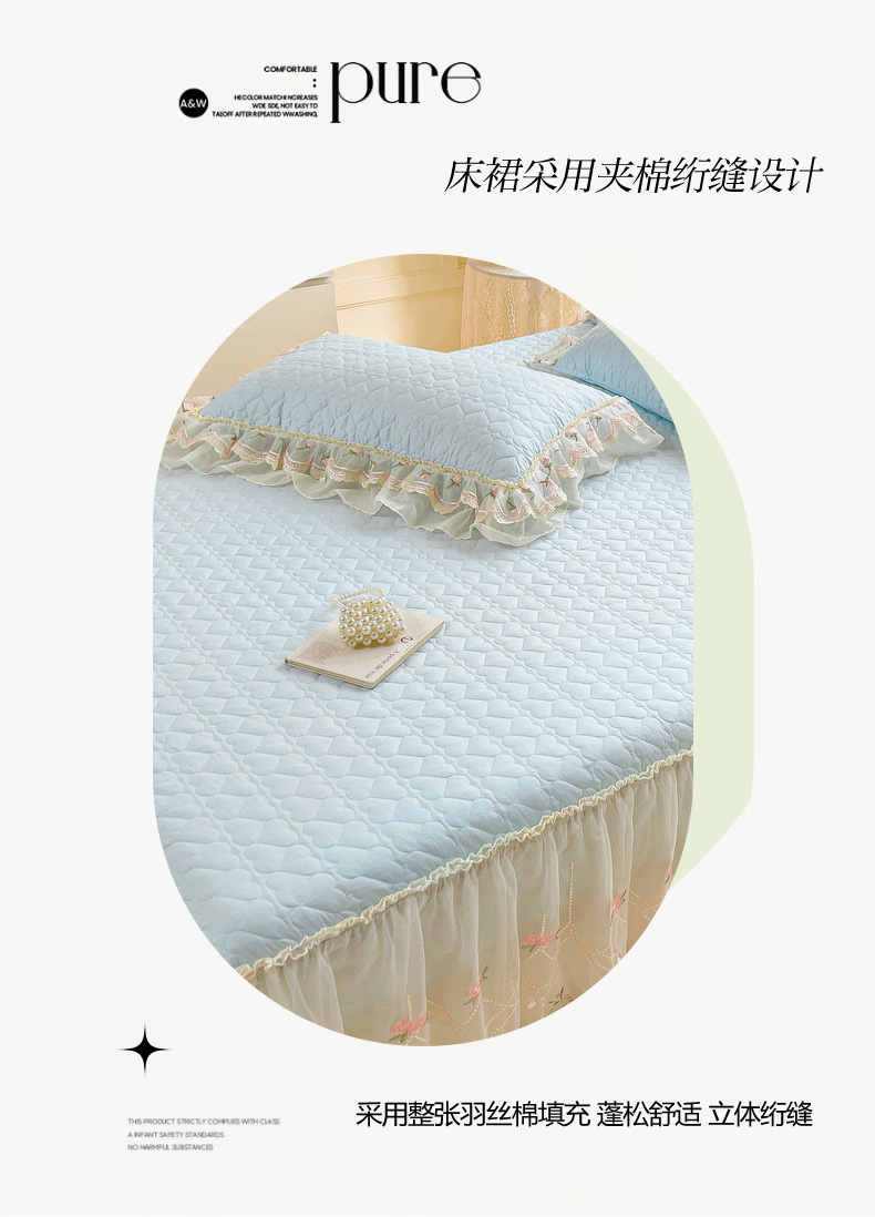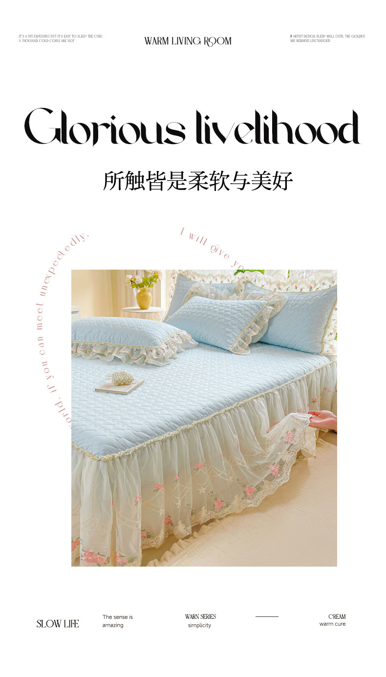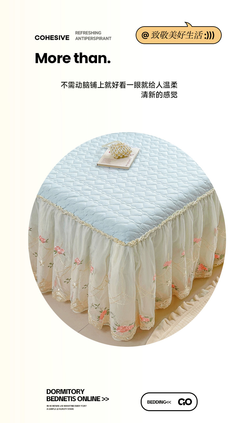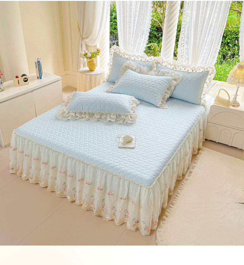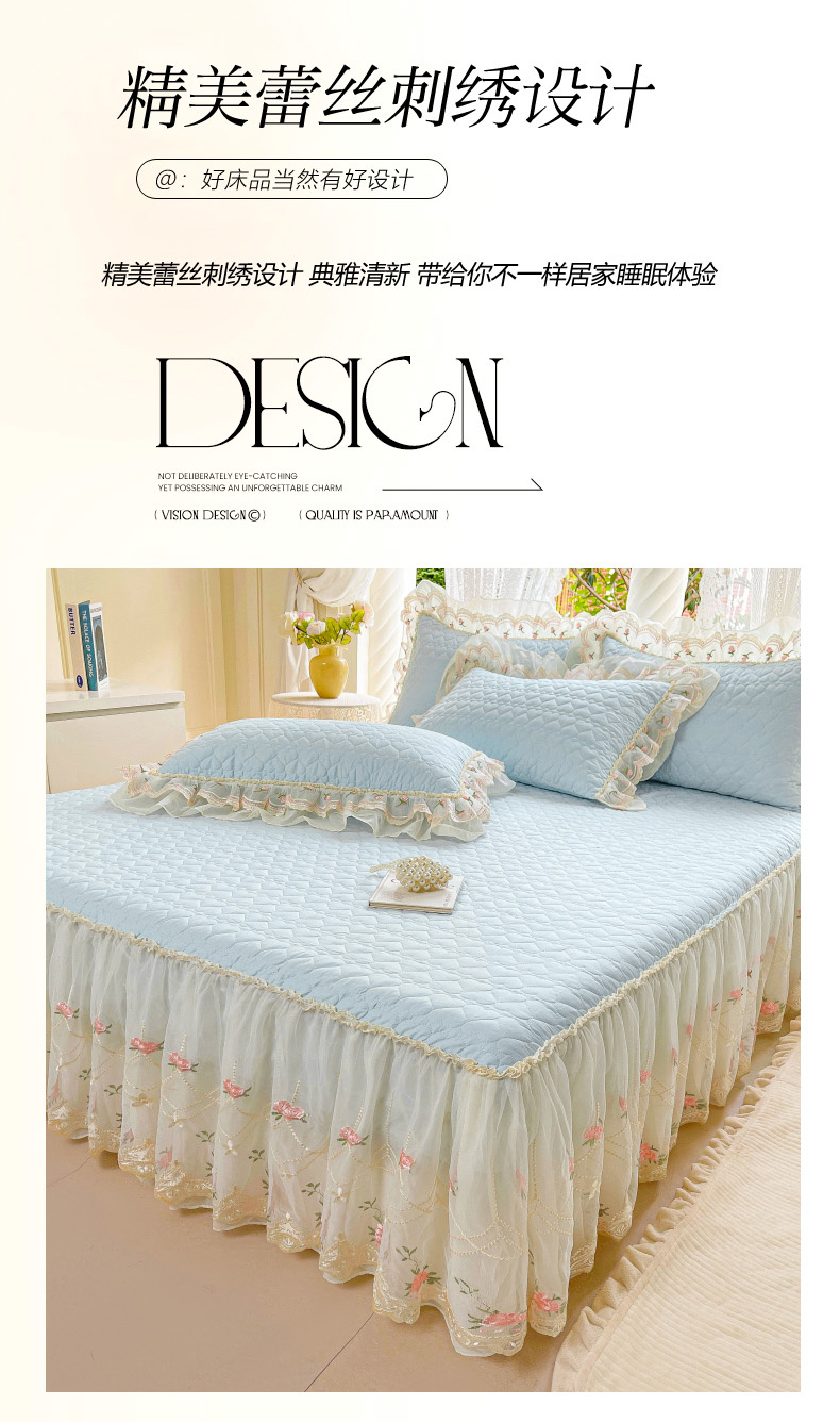 • 91家纺网 家纺一手货源 找家纺 罗艺轩 2025新款全棉蕾丝刺绣单床裙-小香玫瑰 小香玫瑰-天蓝
