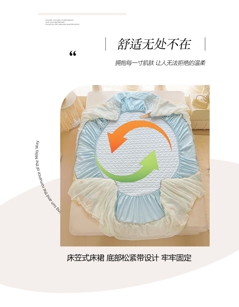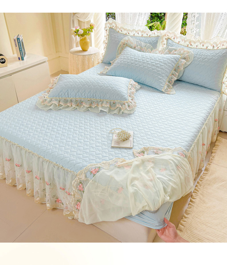 罗艺轩 2025新款全棉蕾丝刺绣单床裙-小香玫瑰 小香玫瑰-天蓝