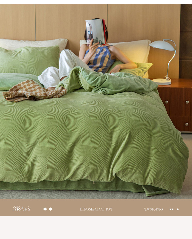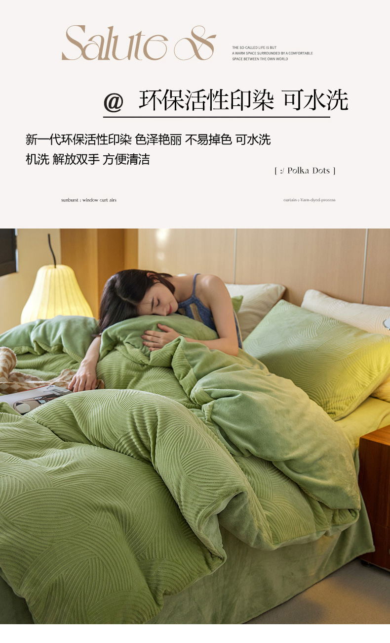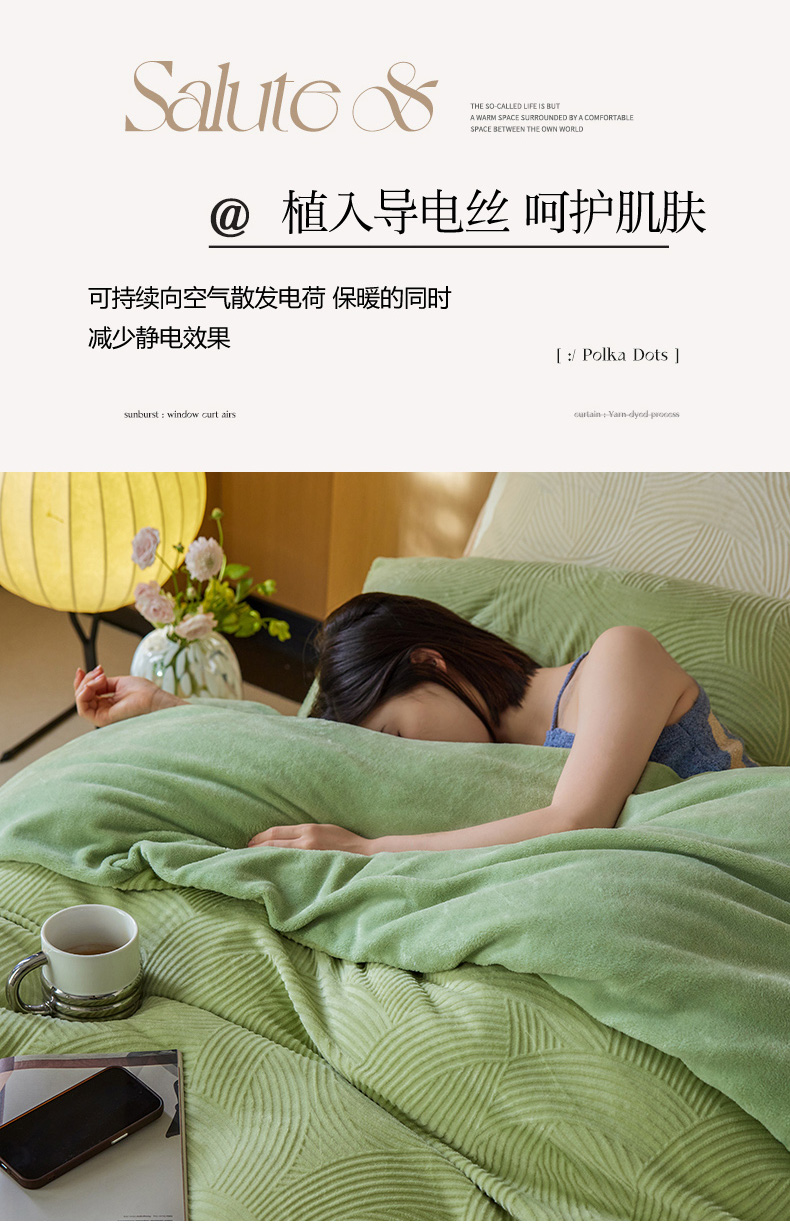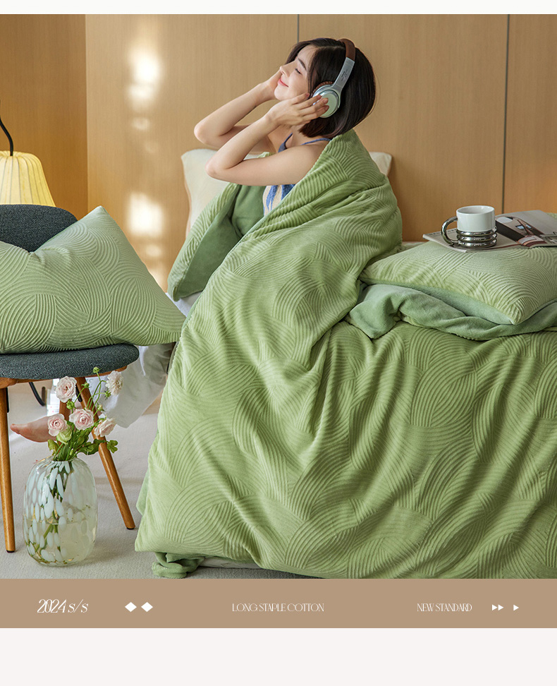 当前位置: 91家纺网 > 商品网购 > 床品套件 > 四件套 > 牛奶绒四件套 > 眠博士 2025新款浮雕款烂花牛奶绒加厚保暖莱伊和赛纳四件套 浮雕款-莱伊浅绿