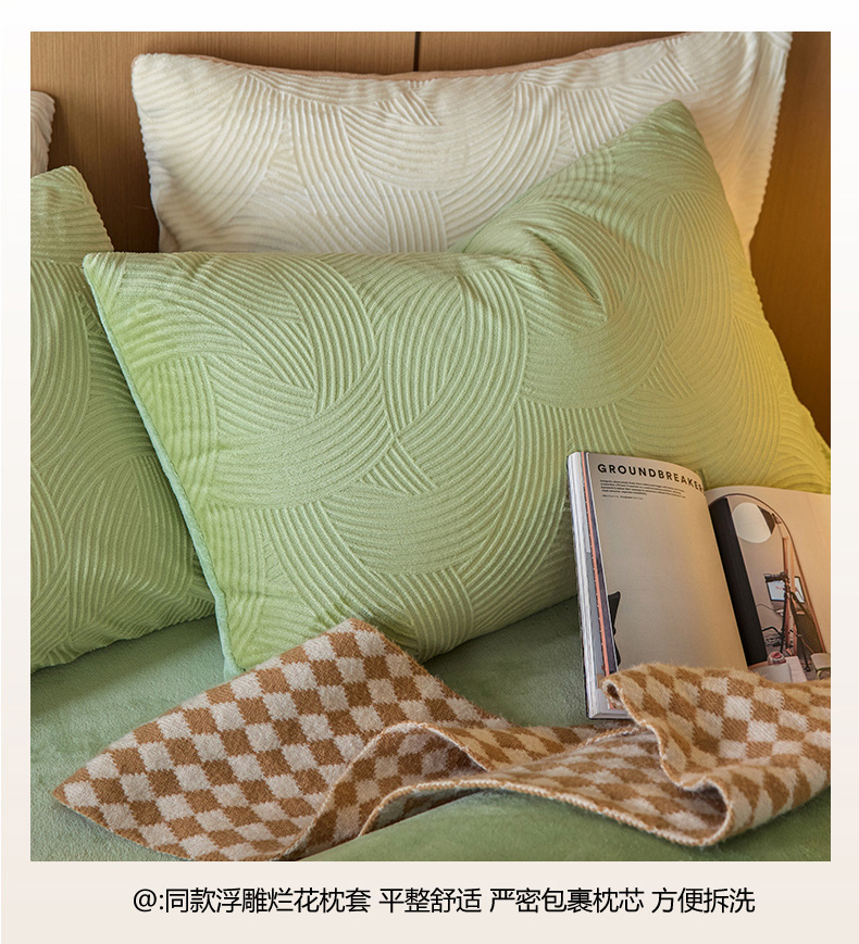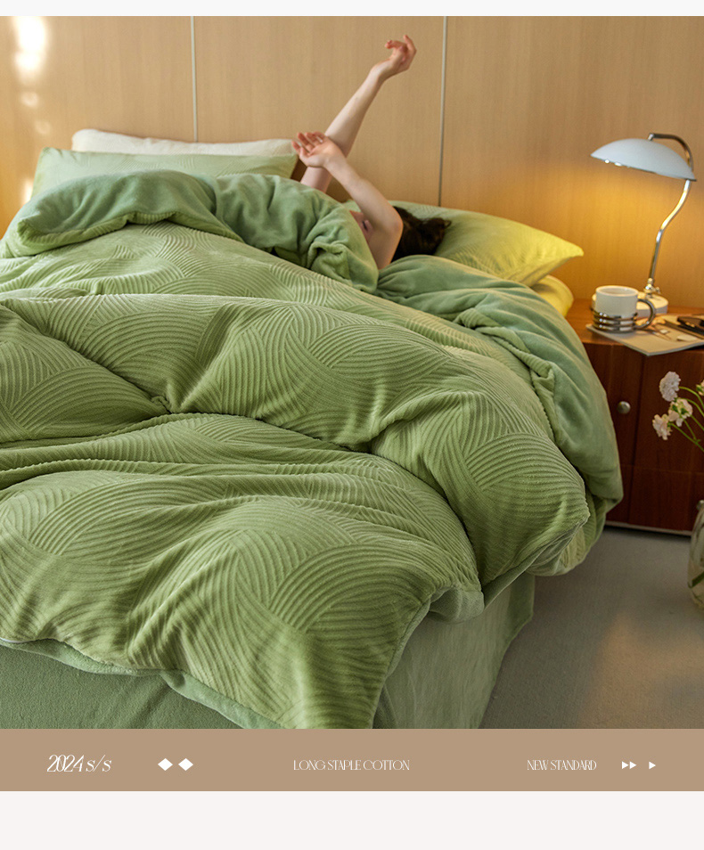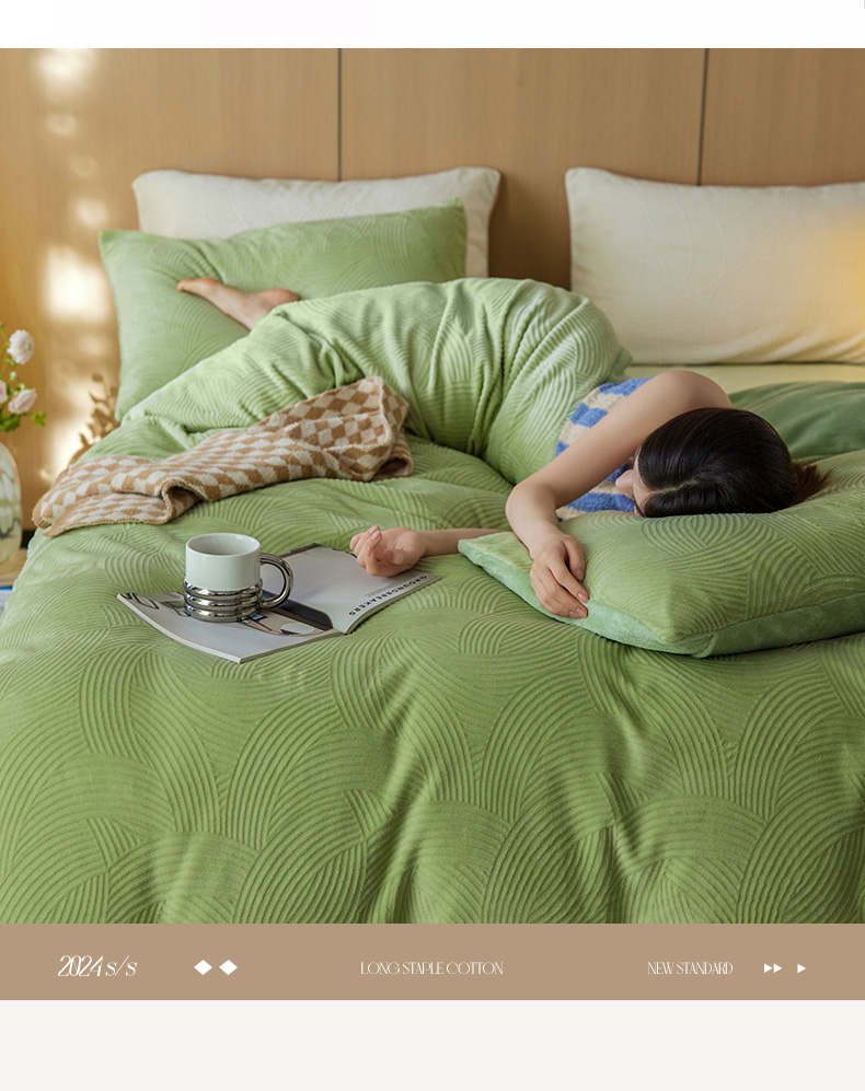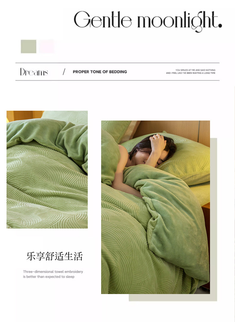 当前位置: 91家纺网 > 商品网购 > 床品套件 > 四件套 > 牛奶绒四件套 > 眠博士 2025新款浮雕款烂花牛奶绒加厚保暖莱伊和赛纳四件套 浮雕款-莱伊浅绿