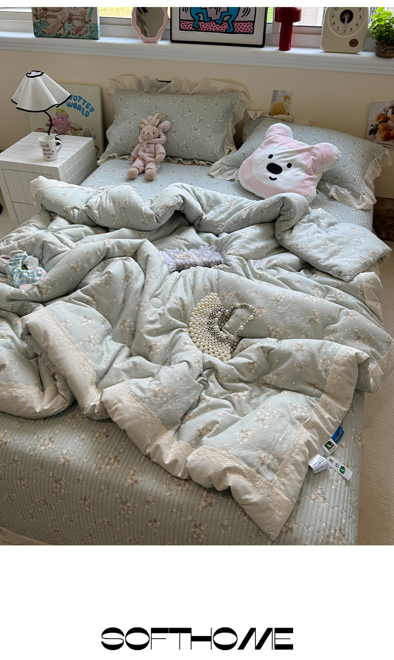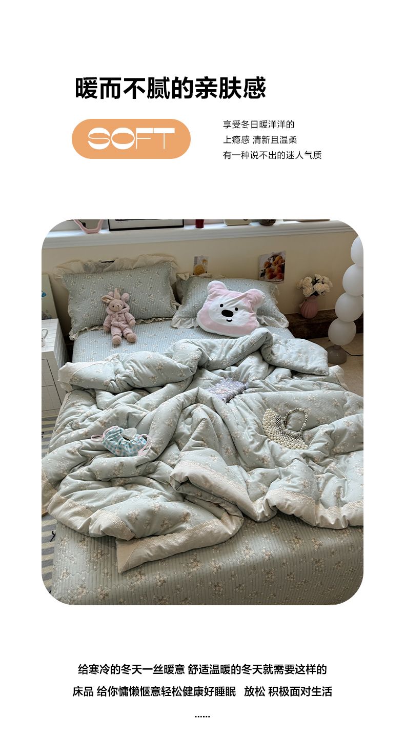当前位置: 91家纺网 > 商品网购 > 床品套件 > 四件套 > 全棉普通四件套 > 一加一 2025新款田园风全棉纯棉双层纱床盖冬被被子被芯四件套 浮沉未央-绿