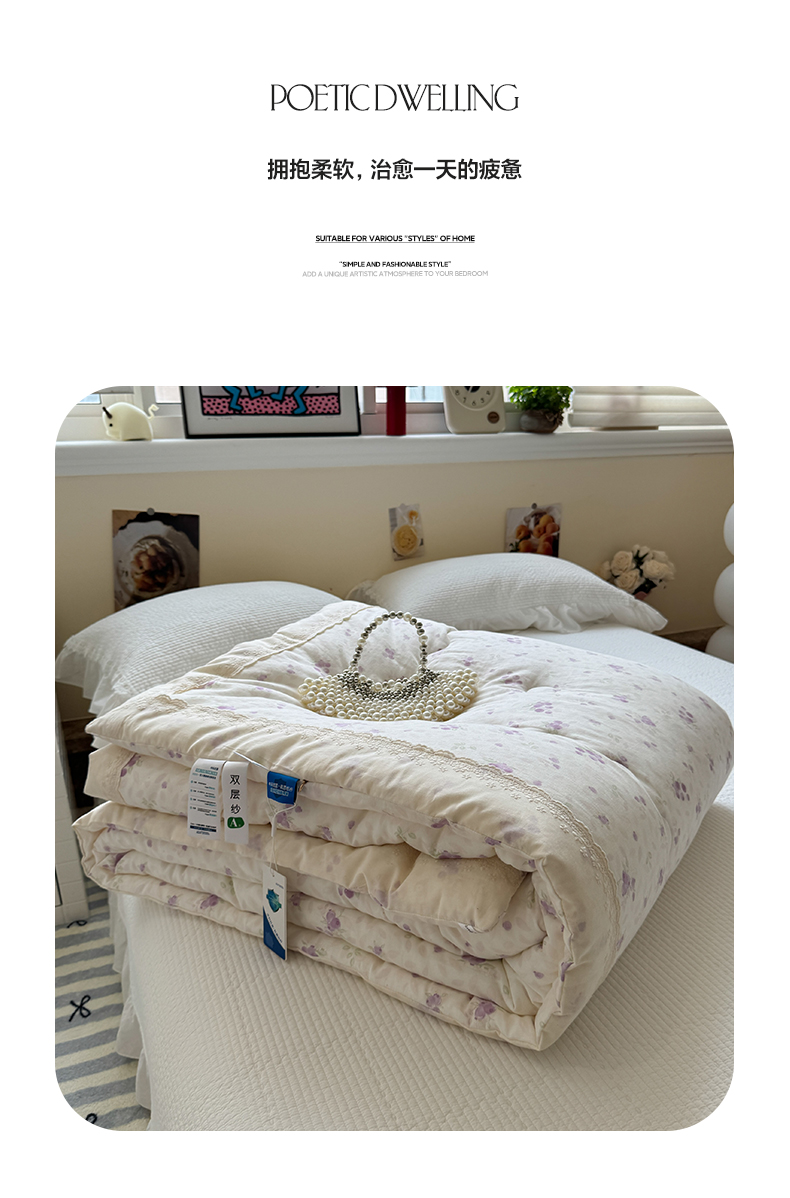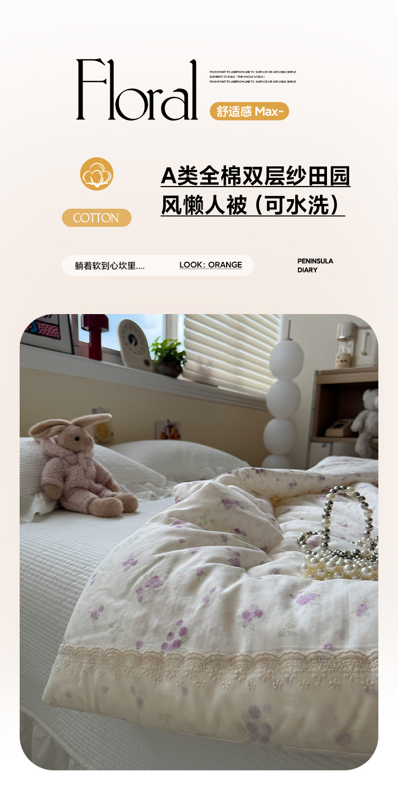 • 91家纺网 家纺一手货源 找家纺 一加一 2025新款A类全棉纯棉双层纱田园风懒人被冬被被子被芯(可水洗) 莓果雨