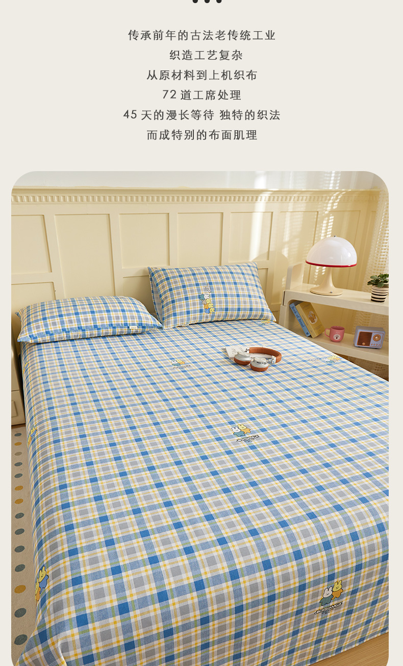 当前位置: 91家纺网 > 商品网购 > 床品套件 > 三件套 > 青泽家纺 2025新款原棉标老粗布系列床单三件套 格子兔