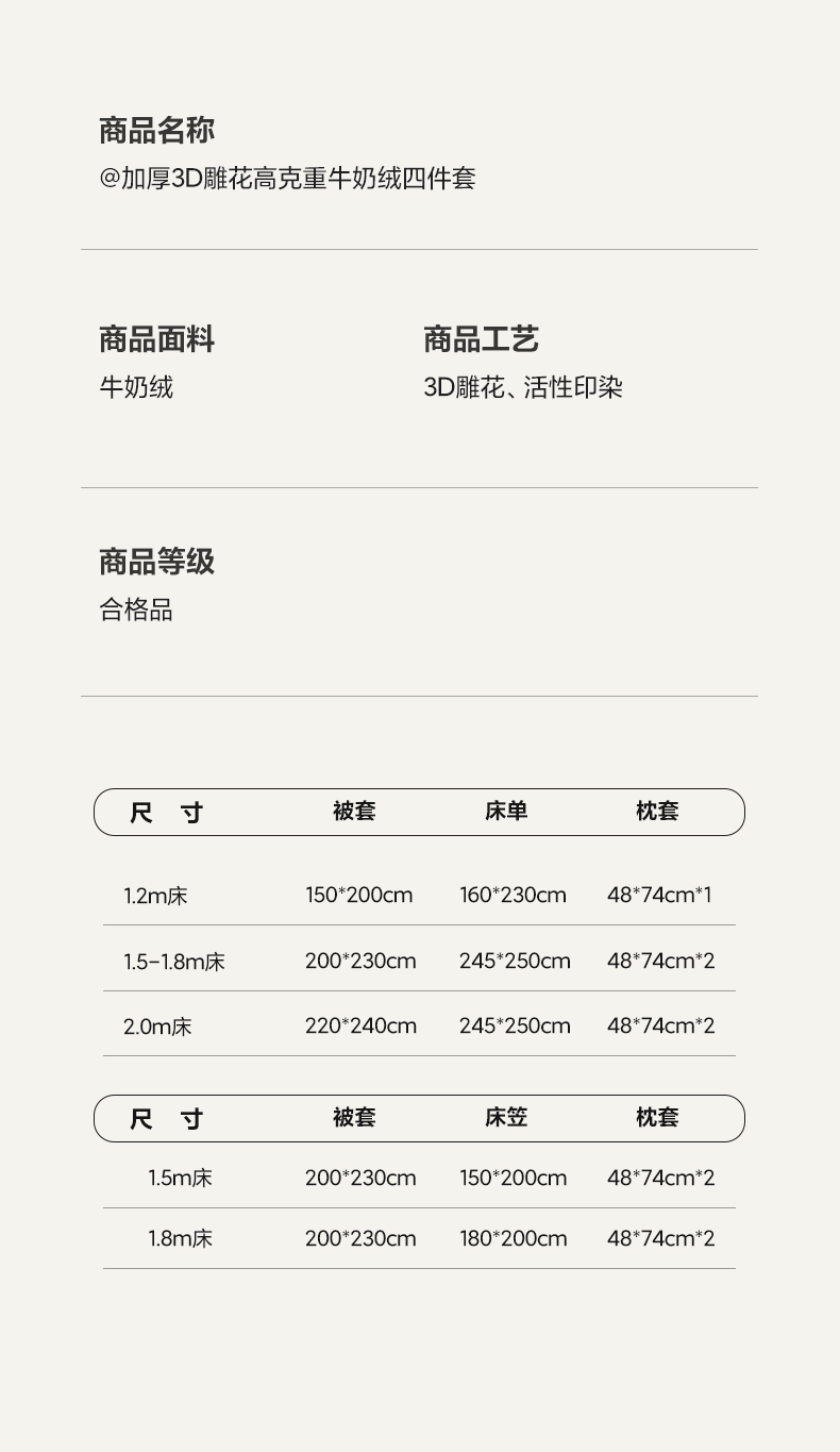 [{"sp_id":11,"sp_name":"\u989c\u8272\u5206\u7c7b","sp_format":2,"sp_list":[{"sp_value_id":1659,"sp_value_name":"\u5361\u62c9\u5df4\u76ae-\u7c89","sp_value_image":{"id":999,"path":"https:\/\/img3.91jf.com\/ghelp\/2025\/20250825\/20250825094932_500703.jpg"},"sp_value_video":{"id":0,"img":"","path":"","time":0,"download_num":0,"play_num":0},"price":"85.00","storage":2498,"weight":"3.000","is_check_weight":0,"plus_price":"","sp_sort":0}]},{"sp_id":10,"sp_name":"\u9002\u7528\u5e8a\u5c3a\u5bf8","sp_format":1,"sp_list":[{"sp_value_id":41,"sp_value_name":"1.2m\u5e8a\u5355\u6b3e\u4e09\u4ef6\u5957","sp_value_image":{"id":0,"path":""},"sp_value_video":{"id":0,"img":"","path":"","time":0,"download_num":0,"play_num":0},"price":"85.00","storage":0,"weight":"3.000","is_check_weight":0,"plus_price":"","sp_sort":5},{"sp_value_id":42,"sp_value_name":"1.5m\u5e8a\u5355\u6b3e\u56db\u4ef6\u5957","sp_value_image":{"id":0,"path":""},"sp_value_video":{"id":0,"img":"","path":"","time":0,"download_num":0,"play_num":0},"price":"95.00","storage":499,"weight":"3.310","is_check_weight":1,"plus_price":"","sp_sort":6},{"sp_value_id":43,"sp_value_name":"1.8m\u5e8a\u5355\u6b3e\u56db\u4ef6\u5957","sp_value_image":{"id":0,"path":""},"sp_value_video":{"id":0,"img":"","path":"","time":0,"download_num":0,"play_num":0},"price":"95.00","storage":499,"weight":"3.300","is_check_weight":1,"plus_price":"","sp_sort":7},{"sp_value_id":44,"sp_value_name":"2.0m\u5e8a\u5355\u6b3e\u56db\u4ef6\u5957","sp_value_image":{"id":0,"path":""},"sp_value_video":{"id":0,"img":"","path":"","time":0,"download_num":0,"play_num":0},"price":"105.00","storage":500,"weight":"3.700","is_check_weight":0,"plus_price":"","sp_sort":8},{"sp_value_id":45,"sp_value_name":"1.5m\u5e8a\u7b20\u6b3e\u56db\u4ef6\u5957","sp_value_image":{"id":0,"path":""},"sp_value_video":{"id":0,"img":"","path":"","time":0,"download_num":0,"play_num":0},"price":"105.00","storage":500,"weight":"3.300","is_check_weight":0,"plus_price":"","sp_sort":9},{"sp_value_id":736,"sp_value_name":"1.8m\u5e8a\u7b20\u6b3e\u56db\u4ef6\u5957","sp_value_image":{"id":0,"path":""},"sp_value_video":{"id":0,"img":"","path":"","time":0,"download_num":0,"play_num":0},"price":"105.00","storage":500,"weight":"3.300","is_check_weight":0,"plus_price":"","sp_sort":10}]}]