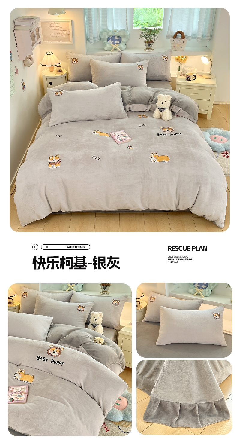 (总)利欧 2025新款满绣卡通牛奶绒刺绣四件套,快乐柯基-银灰,鲜花小兔-米白,向日葵熊-韵绿,向日葵熊-米白,向日葵熊-蓝灰,绅士小熊-银灰,绅士小熊-嫩绿,卡拉巴皮-粉,鲜花小兔-天蓝,鲜花小兔-酱紫,卡拉巴皮-米黄,快乐柯基-米白