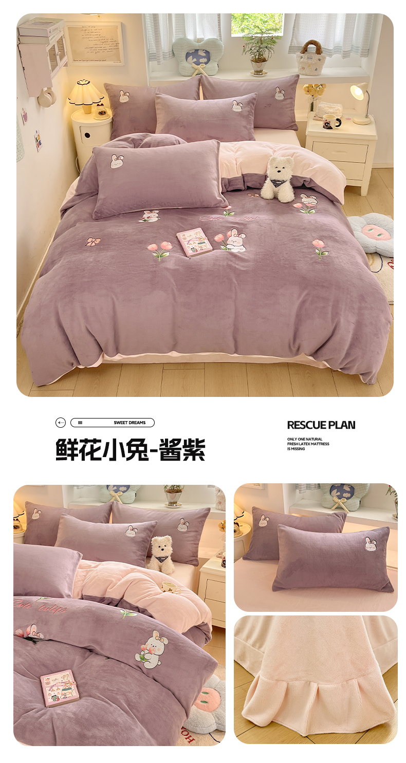 商品名称:利欧 2025新款满绣卡通牛奶绒刺绣四件套 卡拉巴皮-粉