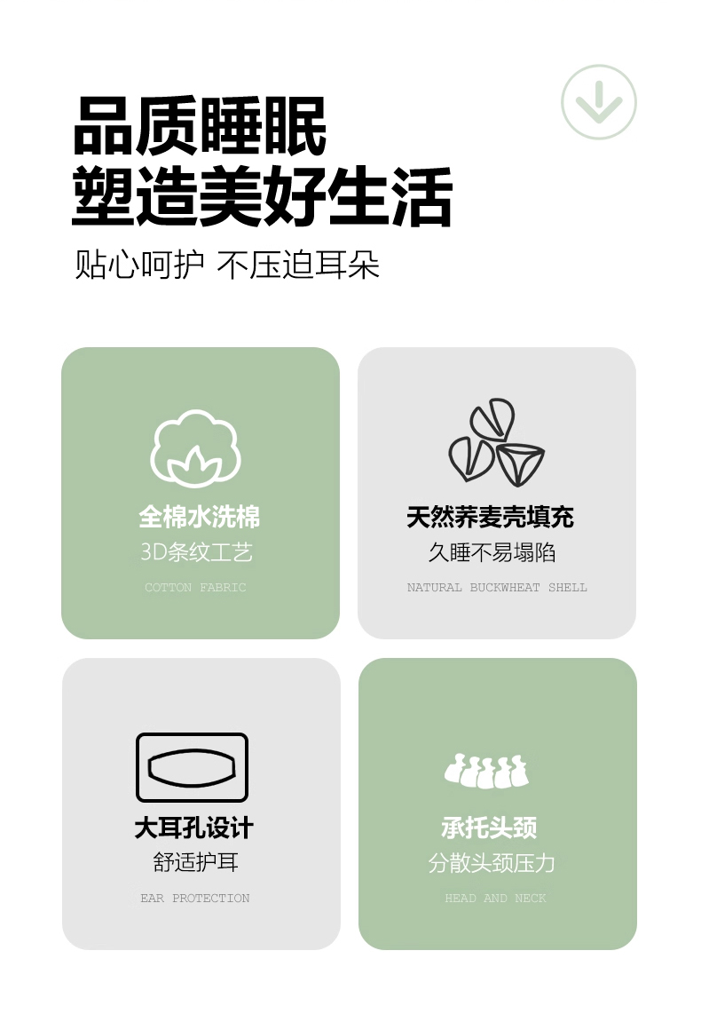 商品名称:金牛枕芯 2025年新款荞麦枕3D护耳枕条纹多色枕头枕芯 蓝色