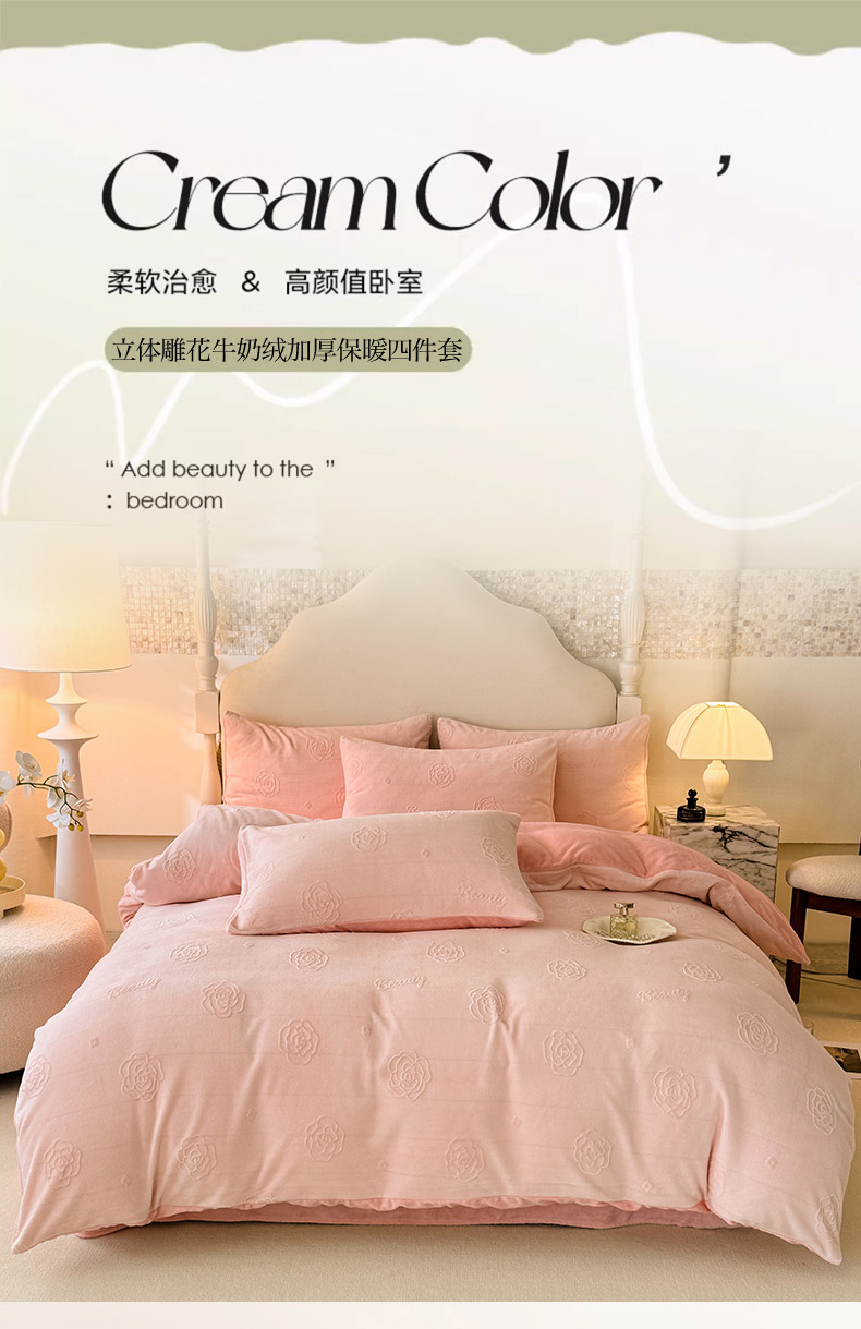 当前位置: 91家纺网 > 商品网购 > 床品套件 > 四件套 > 牛奶绒四件套 > 眠博士 2025新款立体雕花牛奶绒加厚保暖四件套-安吉拉-芙蔓-赛琳 浮雕绒-芙蔓粉
