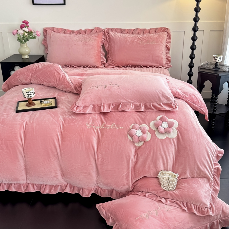 (总)恋尚羽家纺 2025新款韩版花边婴儿绒绣花大床裙四件套宝宝绒婴肤绒公主风韩式,大红色,豆沙色,粉色,湖蓝色,灰色,桔色,墨绿色,紫色