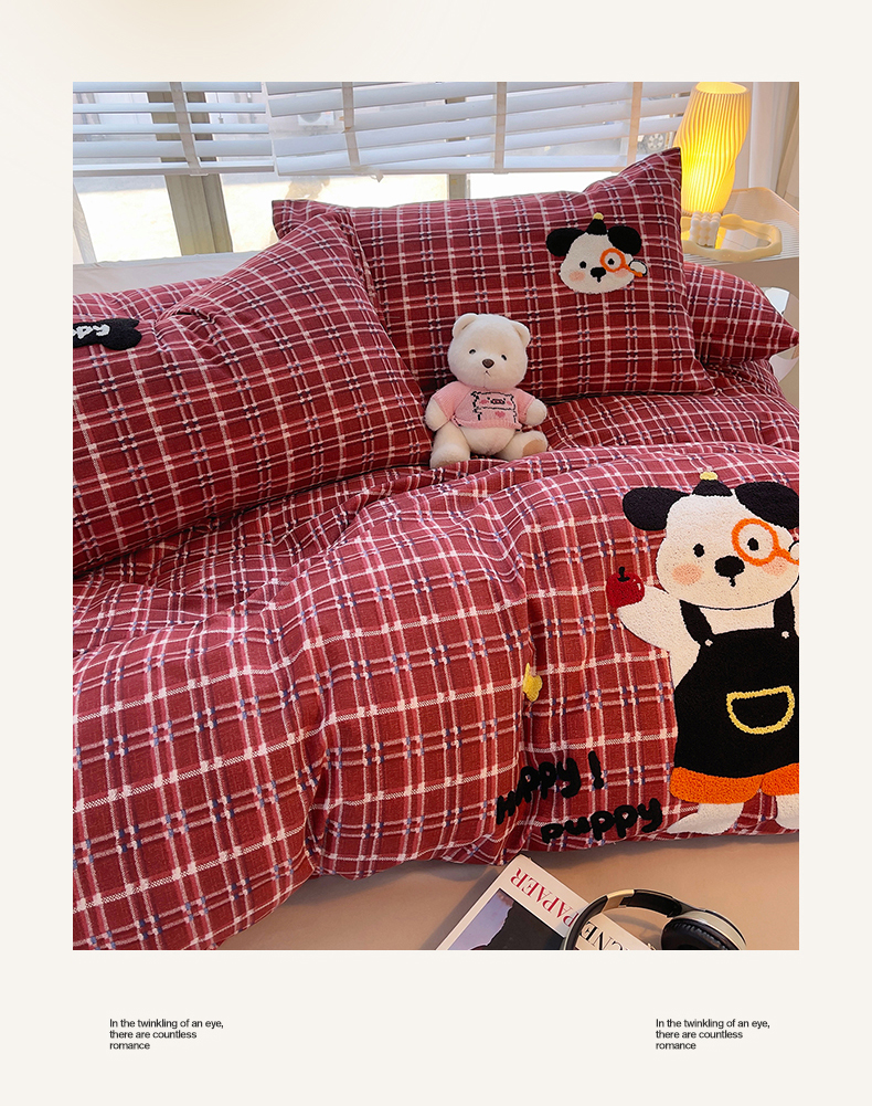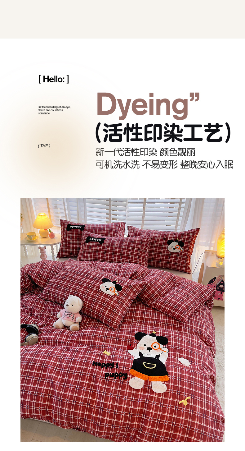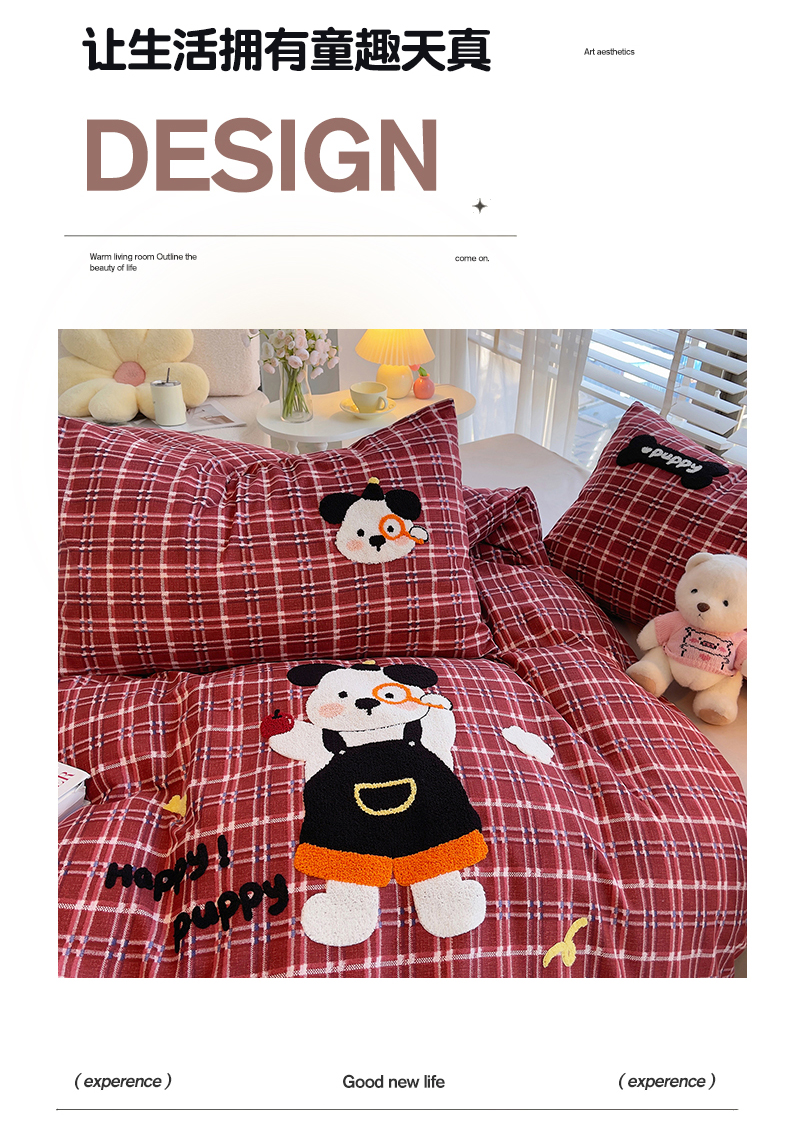 炫拼家纺 2025新款全棉磨毛卡通贴布绣加厚毛巾绣纯棉四件套-曲奇系列 曲奇-苹果狗