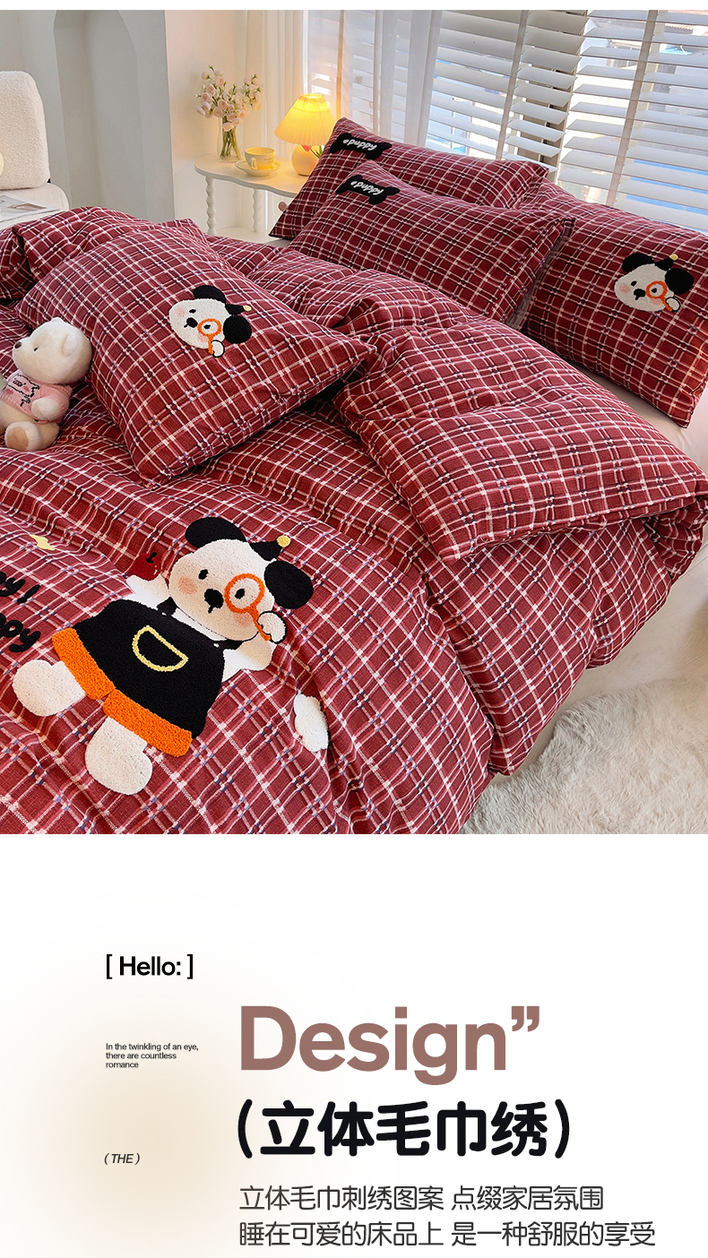 (总)炫拼家纺 2025新款全棉磨毛卡通贴布绣加厚毛巾绣纯棉四件套-曲奇系列,曲奇-苹果狗,曲奇-Good卡皮,曲奇-波点猫,曲奇-好朋友,曲奇-红军熊猫,曲奇-举高高,曲奇-晚安猫