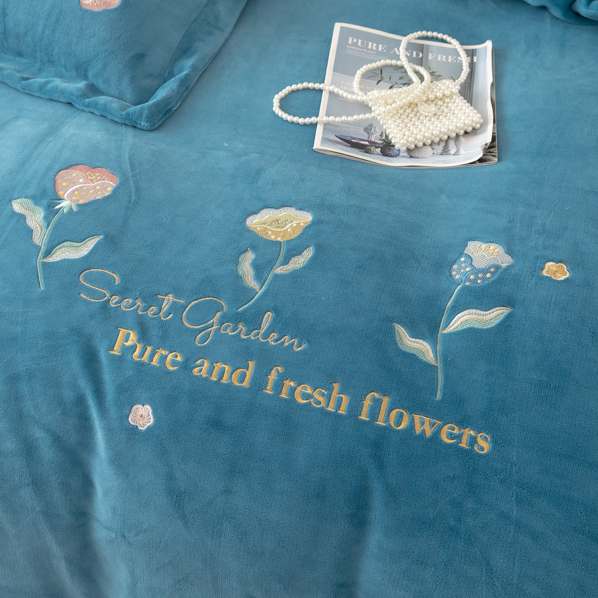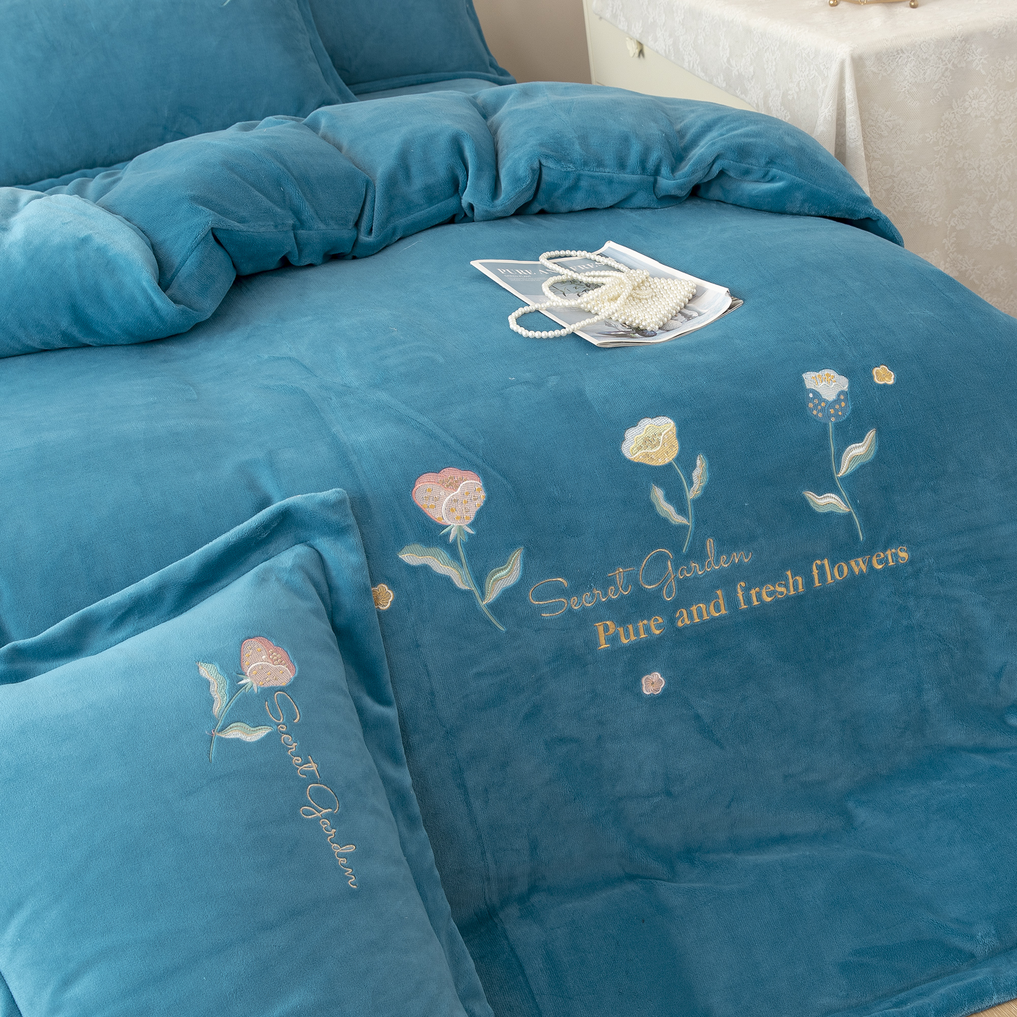 (总)贝尔 2025新款牛奶绒刺绣四件套-花语系列,花语-豆沙,花语-粉色,花语-高级灰,花语-蓝色,花语-浅绿,花语-玉色