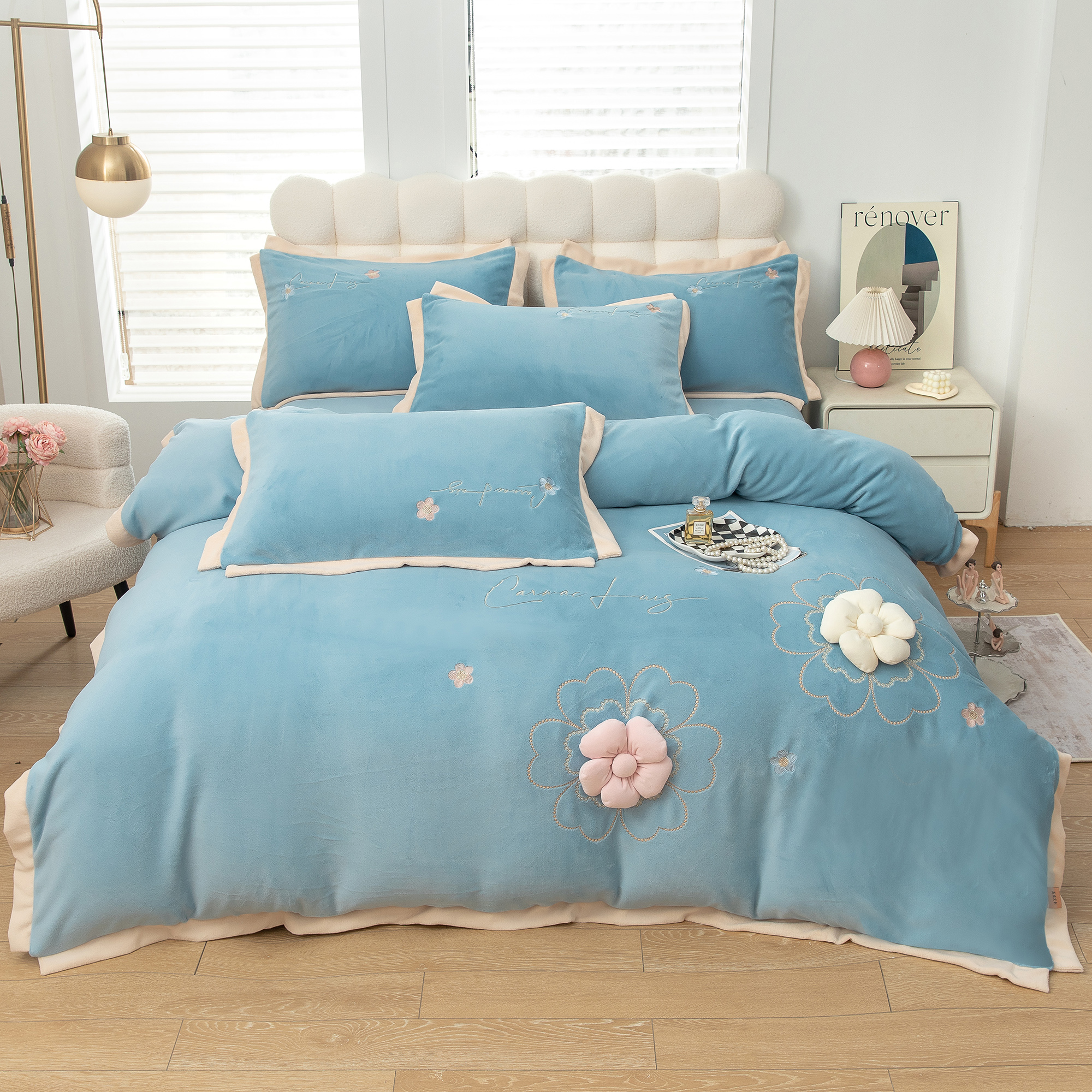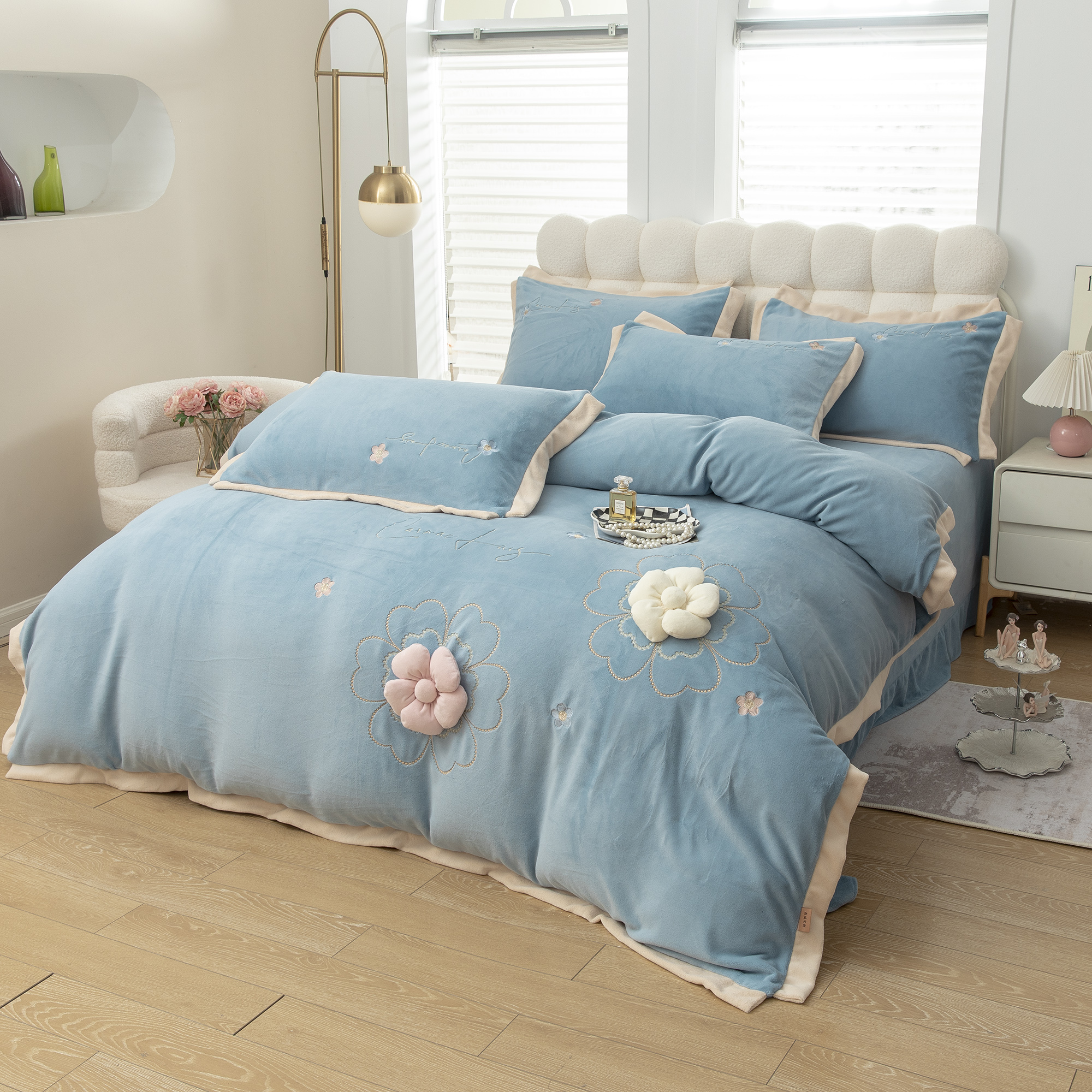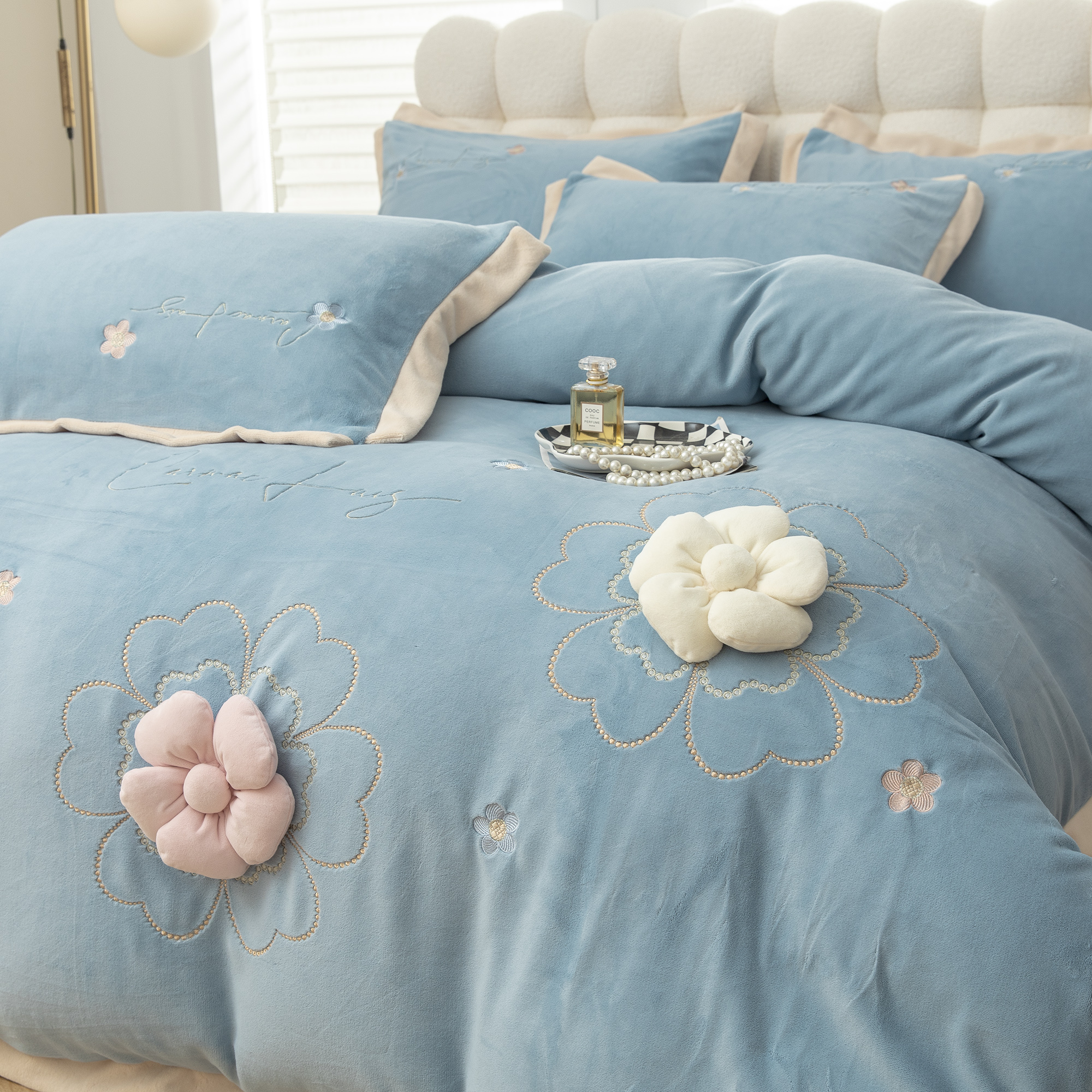 (总)贝尔 2025新款牛奶绒刺绣四件套-花语系列,花语-豆沙,花语-粉色,花语-高级灰,花语-蓝色,花语-浅绿,花语-玉色