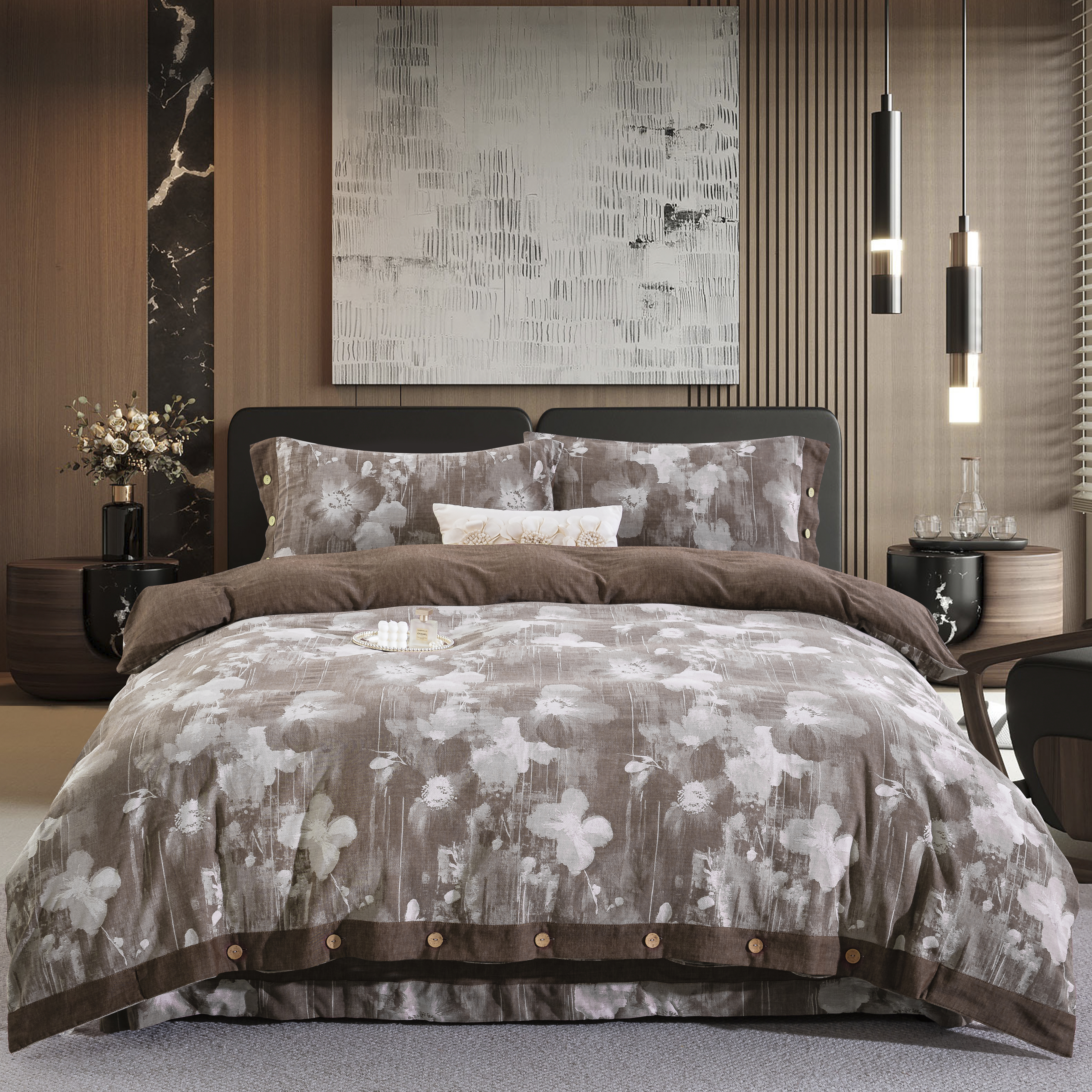 鲁爱家纺供货 2025新款全棉色织提花四件套 花都-咖