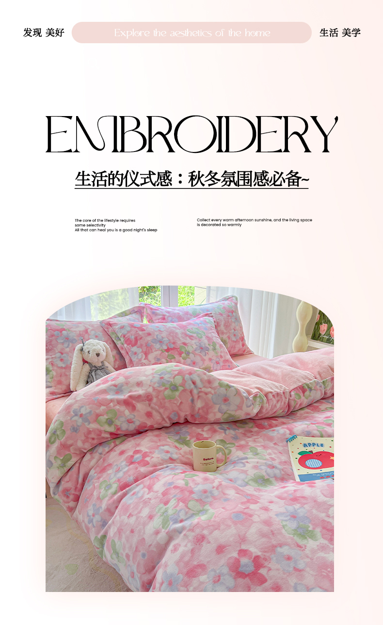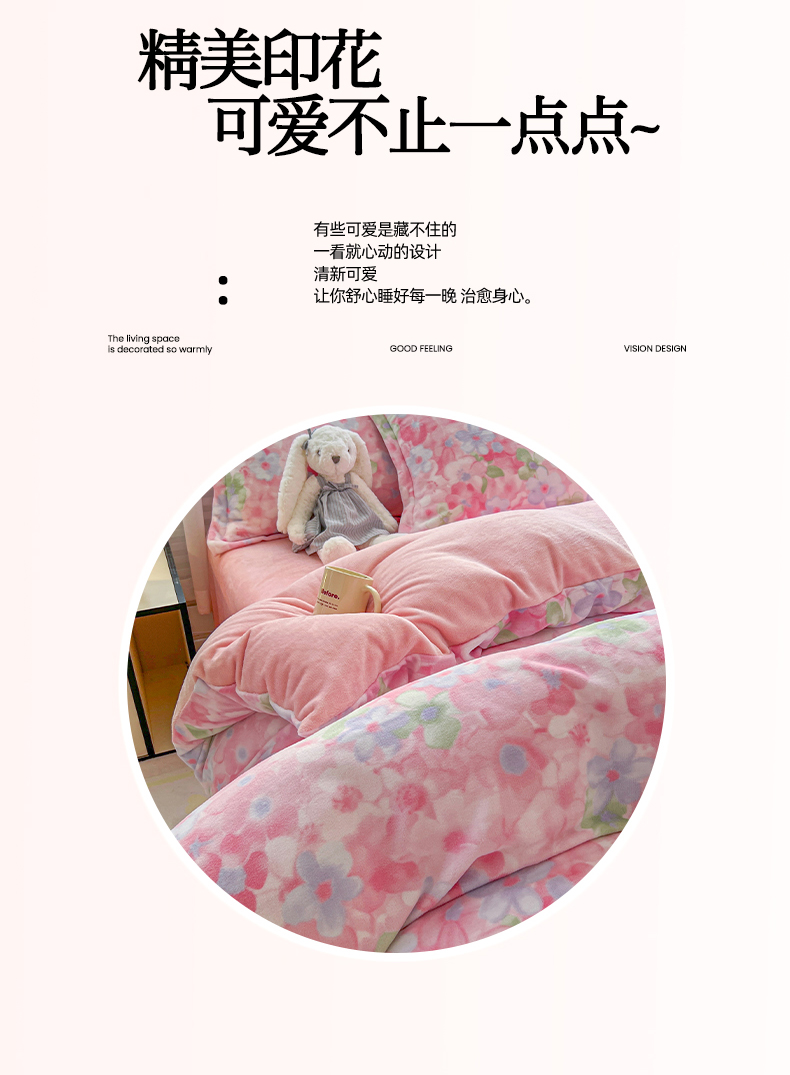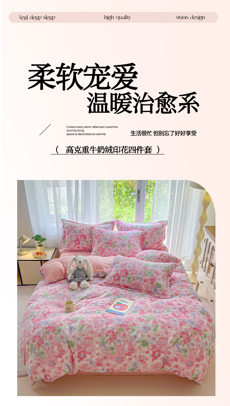 当前位置: 91家纺网 > 商品网购 > 床品套件 > 四件套 > 牛奶绒四件套 > 妖妖家纺 2025新款高克重200克牛奶绒印花四件套 花轻语