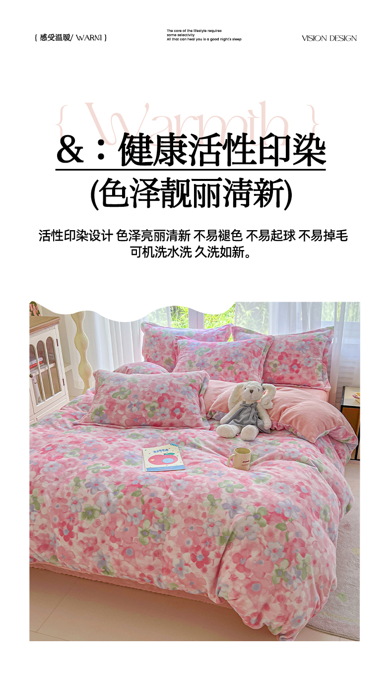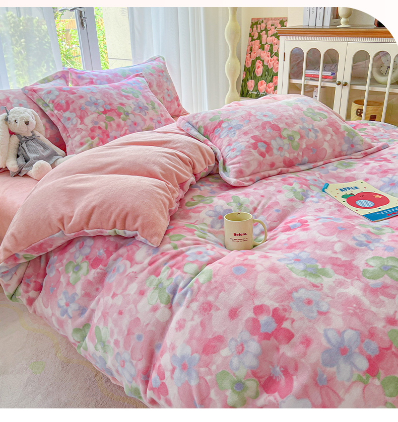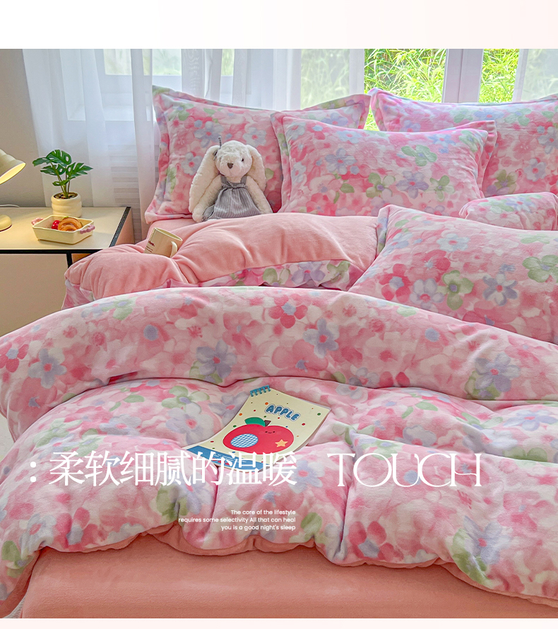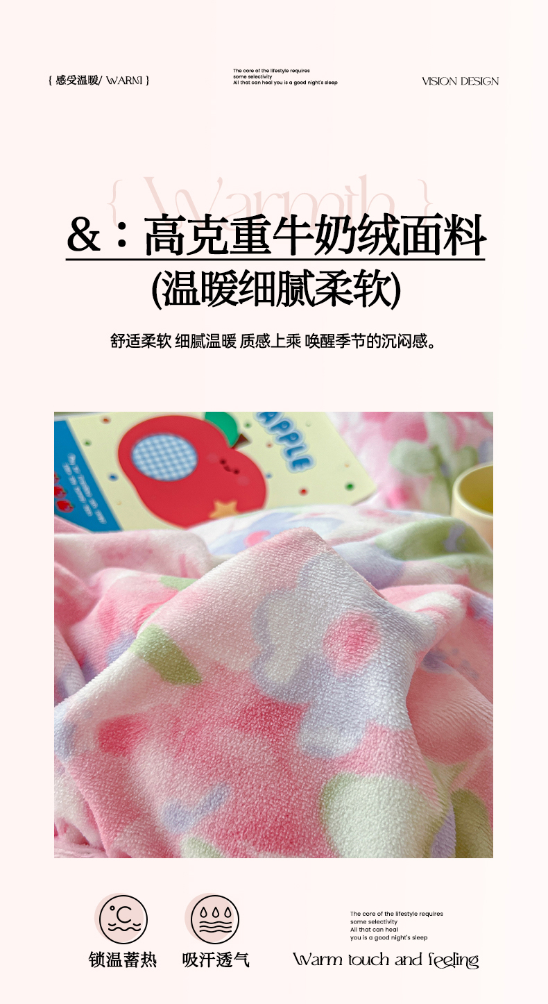 当前位置: 91家纺网 > 商品网购 > 床品套件 > 四件套 > 牛奶绒四件套 > 妖妖家纺 2025新款高克重200克牛奶绒印花四件套 花轻语