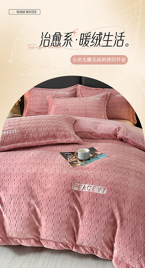 (总)梓之赫 2025新款保暖舒适牛奶绒印花夹棉床盖四件套,爱恋,豹纹,花盏-白,花盏-黑,眷恋,如约,心愿,约定