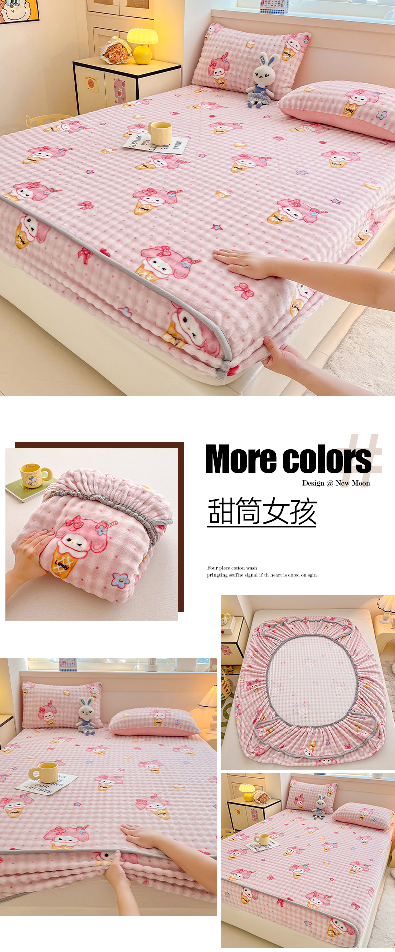 (总)慕梵家居 2025新款泡泡绒床笠泡泡兔绒床罩外贸可以定做尺寸单品床笠单件床笠,爱心物语,抱抱熊,潮玩布布-咖,潮玩布布-米,开心喵喵,凯特猫,迷你爱心,奶瓶萌犬,甜筒女孩,甜心派对,小精灵,小胖哒,小熊乐园,星月传奇,幸运狗,音乐派对