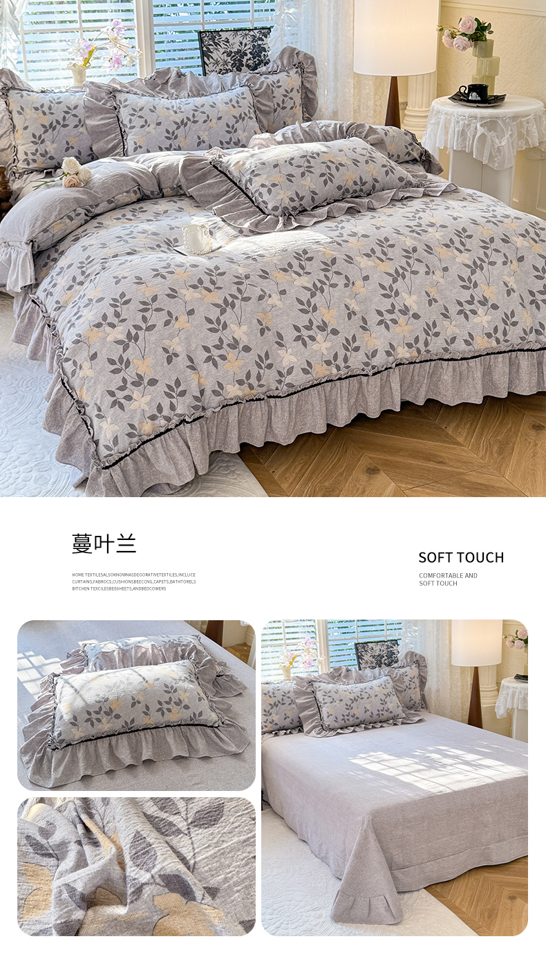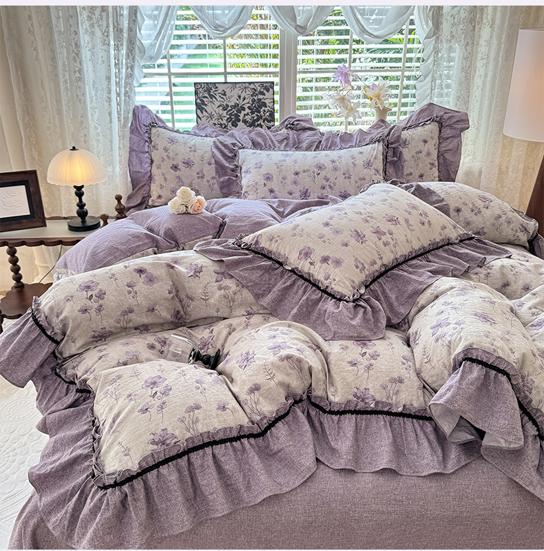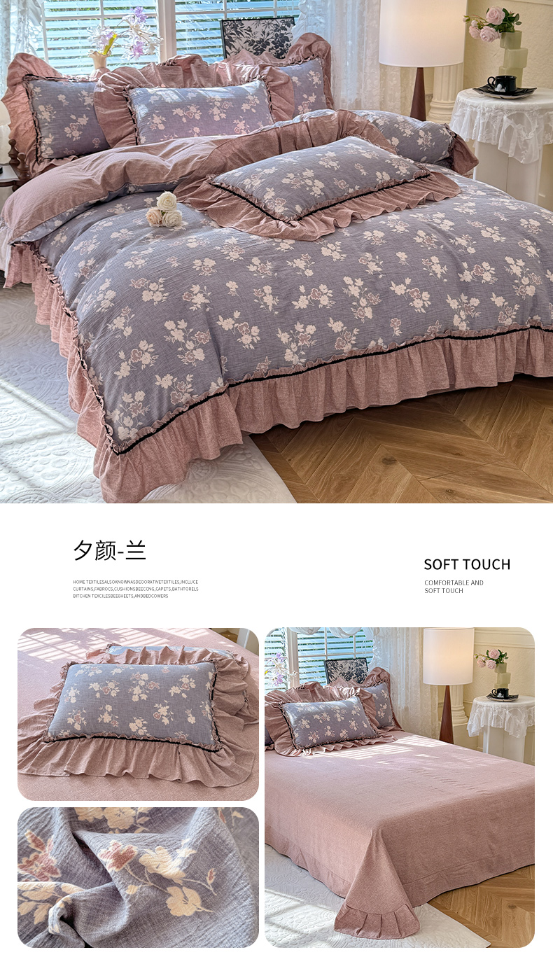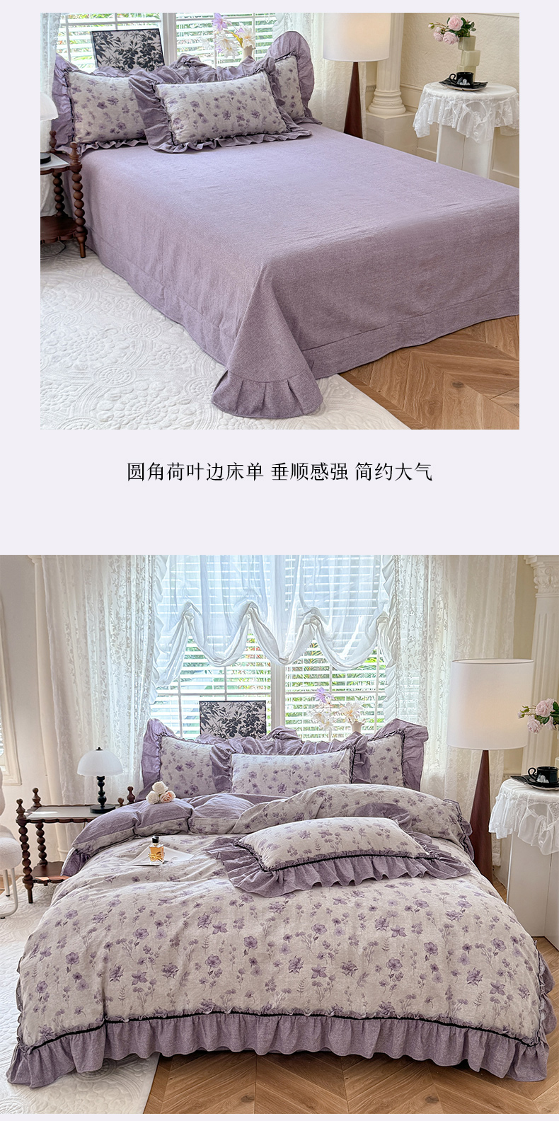 (总)唐人居 2026新款水洗棉花边床盖四件套-花影系列,花影-浅紫,花影-豆沙,花影-玫红,花影-暖橘,花影-苹果绿,花影-浅粉,花影-浅灰