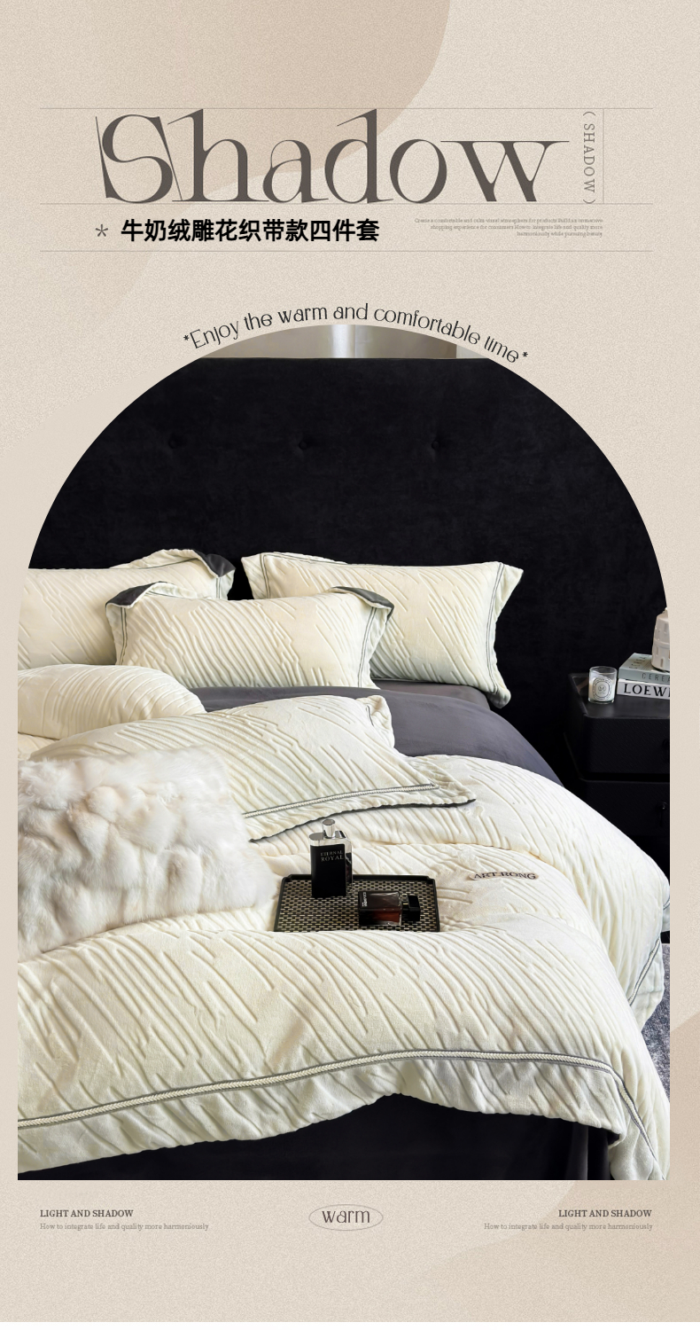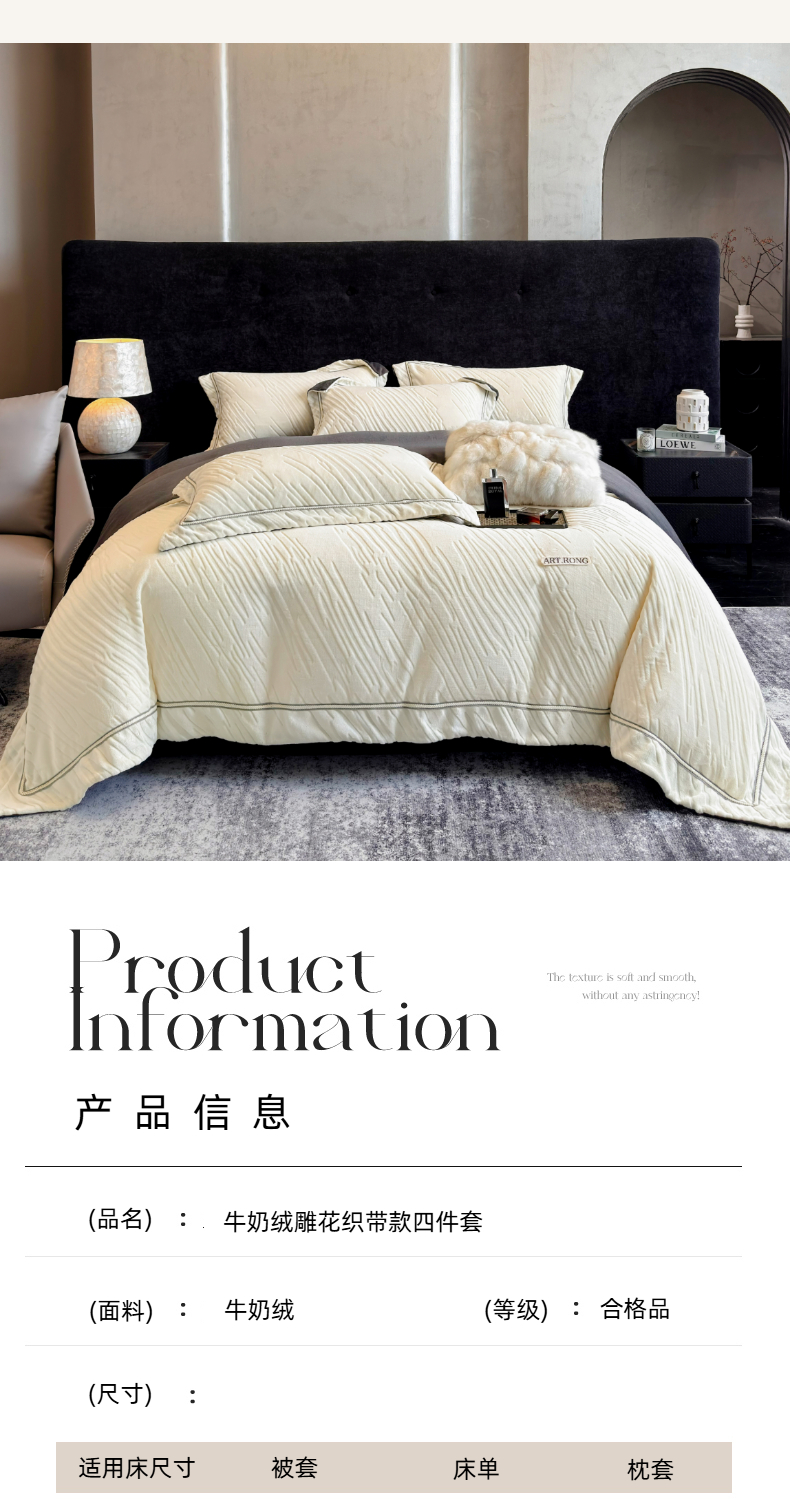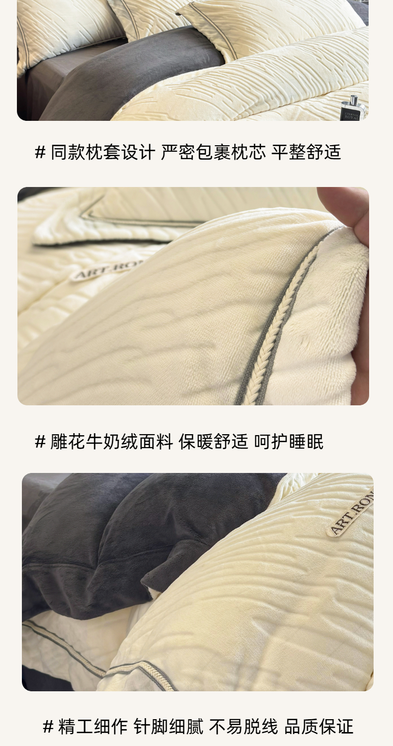 商品名称:(总)首尔家纺 2025新款雕花牛奶绒宽边织带款四件套-海伦娜系列
