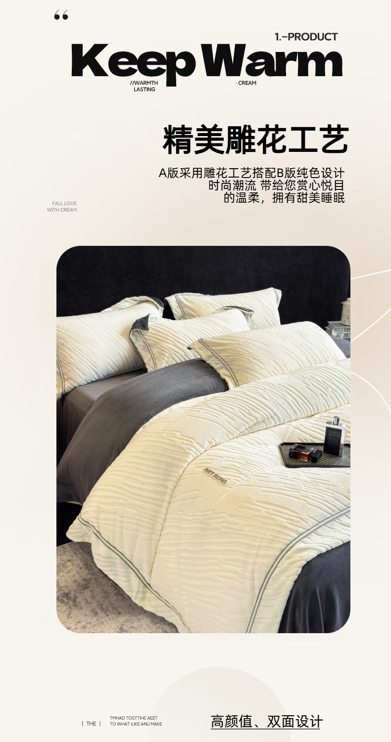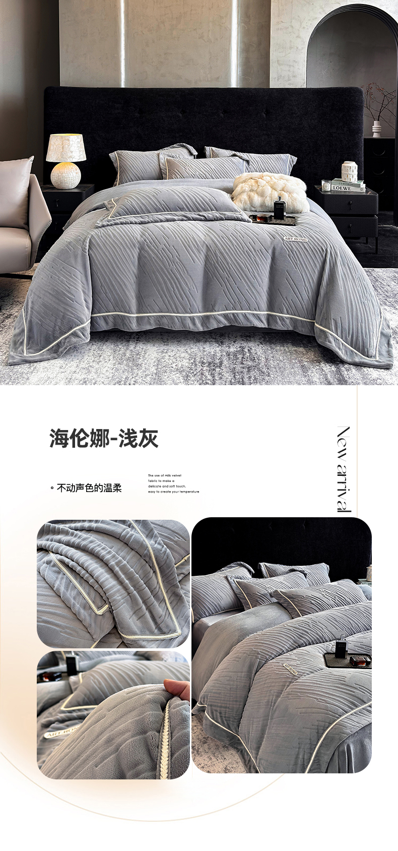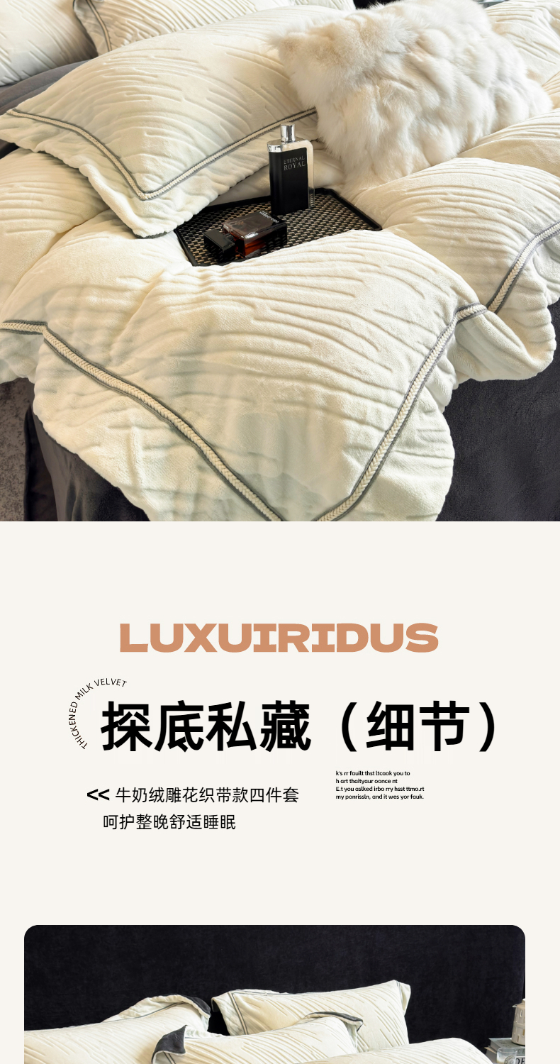 商品名称:(总)首尔家纺 2025新款雕花牛奶绒宽边织带款四件套-海伦娜系列